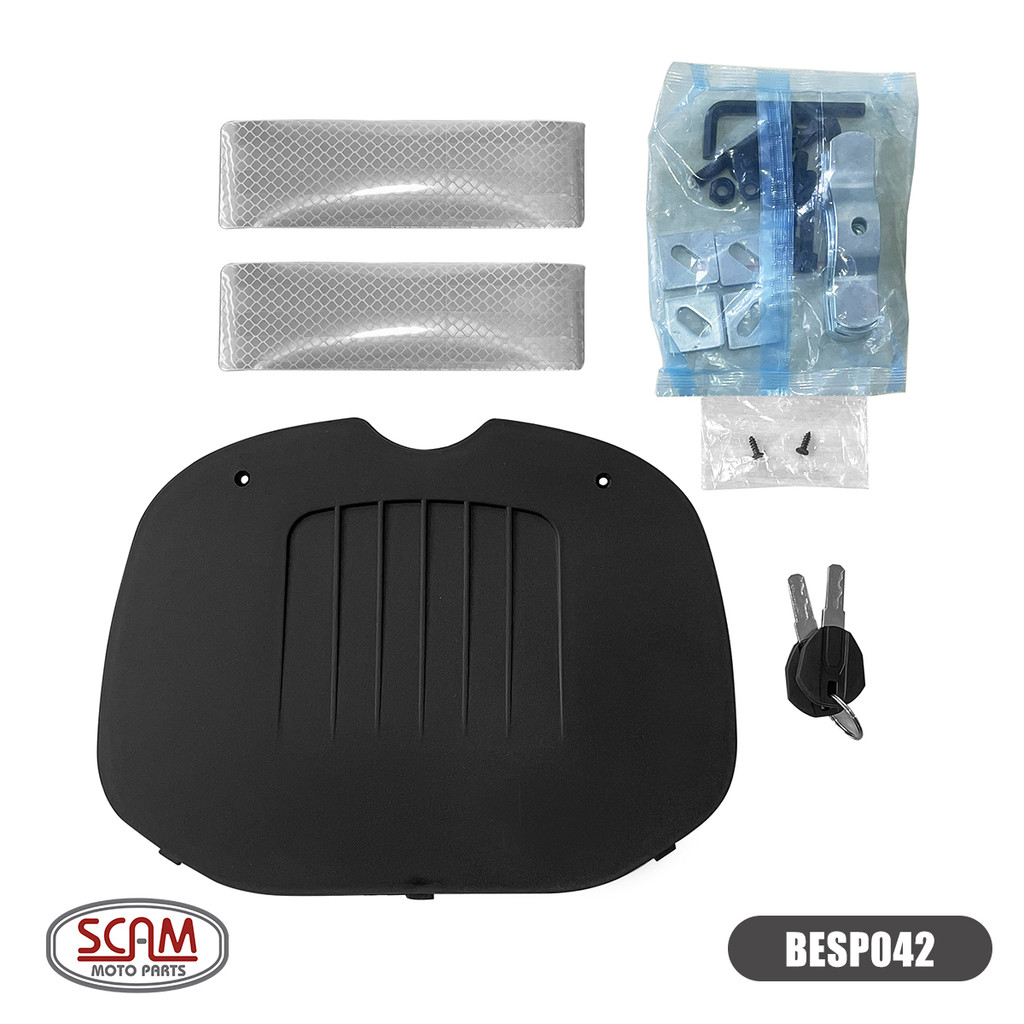 BAÚ SUPERIOR PRETO 42L SCAM ECONOMY – BESP042 O Baú SCAM Economy foi desenvolvido para aliar design, durabilidade e praticidade, oferecendo segurança total para transportar sua bagagem em diversos modelos de motocicletas. Com seu exclusivo sistema de engate rosqueável, proporciona fixação firme e remoção ágil, permitindo que o motociclista aproveite ao máximo cada viagem. Pronto para qualquer desafio: asfalto, cascalho, lama, sol ou tempestade. DESTAQUE ESPECIAL: BASE DE FIXAÇÃO UNIVERSAL, COMPATÍVEL COM A MAIORIA DOS BAGAGEIROS DO MERCADO! CARACTERÍSTICAS PRINCIPAIS: Cor: Preto fosco; Capacidade total: 42 litros (comporta 01 capacete); Carga máxima suportada: 10 kg; Material do corpo: Polímero de alta resistência anti-impacto; Encosto duplo macio: Feito em PU injetado; Fechadura em aço inox: Com chaves codificadas; Cinta interna: Para maior segurança da carga; Forro interno removível: Com bolsos organizadores; Manipulo rosqueável: Para fixação firme na base; Vedação em borracha na tampa: Protege contra chuva e poeira; Adesivos refletivos: Aumentam a visibilidade em condições noturnas. DIMENSÕES DO PRODUTO: Altura: 33 cm Largura: 42 cm Comprimento: 44 cm DIFERENCIAIS SCAM: Matéria-prima certificada e normalizada; Rigoroso controle de qualidade Tecnologia de fabricação moderna; Resistência e durabilidade para todo tipo de uso. ITENS INCLUSOS: 1 Baú SCAM Economy 42L; Base de fixação universal; Kit completo de fixação; ESPECIFICAÇÕES GERAIS: Modelo: BESP042 Fixação: Sistema de engate rosqueável com base universal Garantia: 3 meses contra defeitos de fabricação