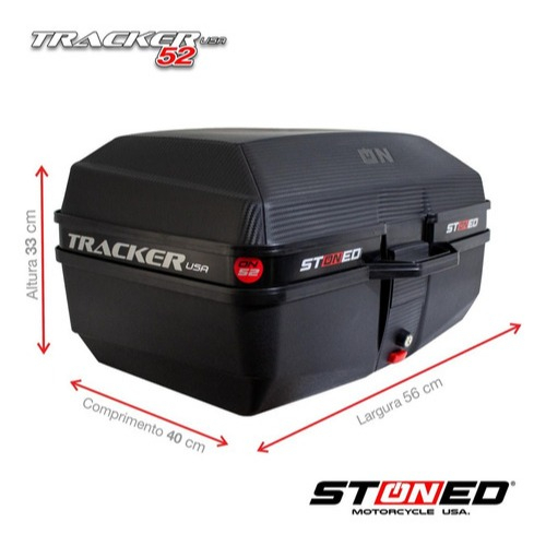 Bauleto Baú Moto 52 e 35 Litros Stoned + Base Fixação Universal Titan Fan Bros Tracker Reforçada