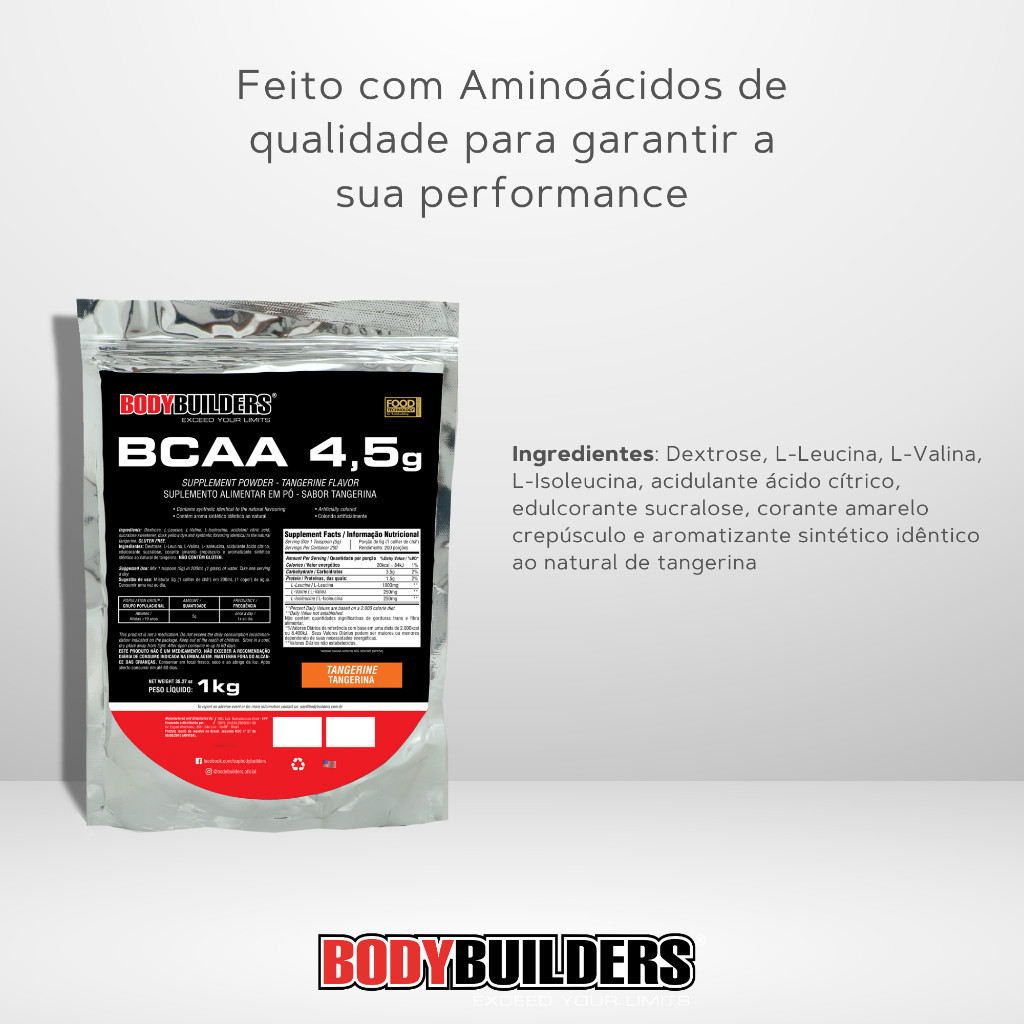 BCAA em Pó 4.5 1kg - Recuperação pós-treino e Performance - Bodybuilders