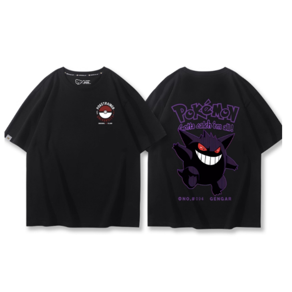 BEAST FASHION 2025 Novo Camiseta de Manga Curta Casual Masculina com Estampa Fantasmas Pokémon Gastly,Haunter,Gengar