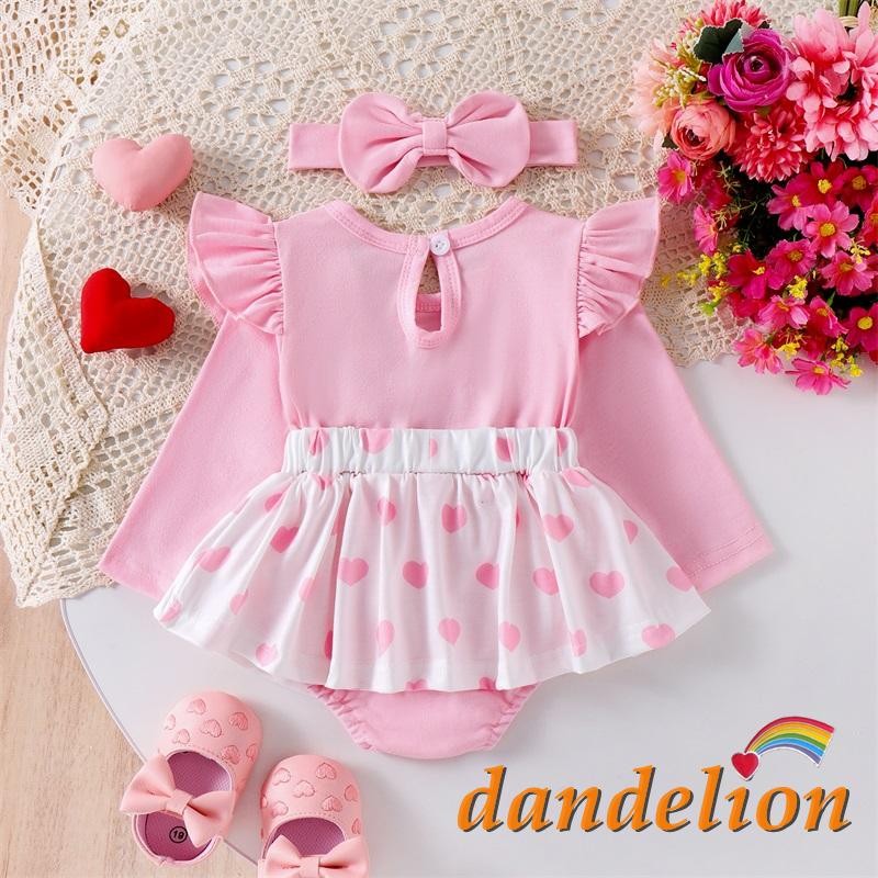 Bebê Menina Coração Impressão Manga Longa Em Torno Do Pescoço Urso Bordado Macacão Vestido Com Bandana