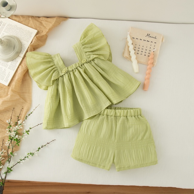 Bebê Menina De Duas Peças Verão Novas Roupas Infantis De Cor Sólida (9 Meses A 4 Anos)