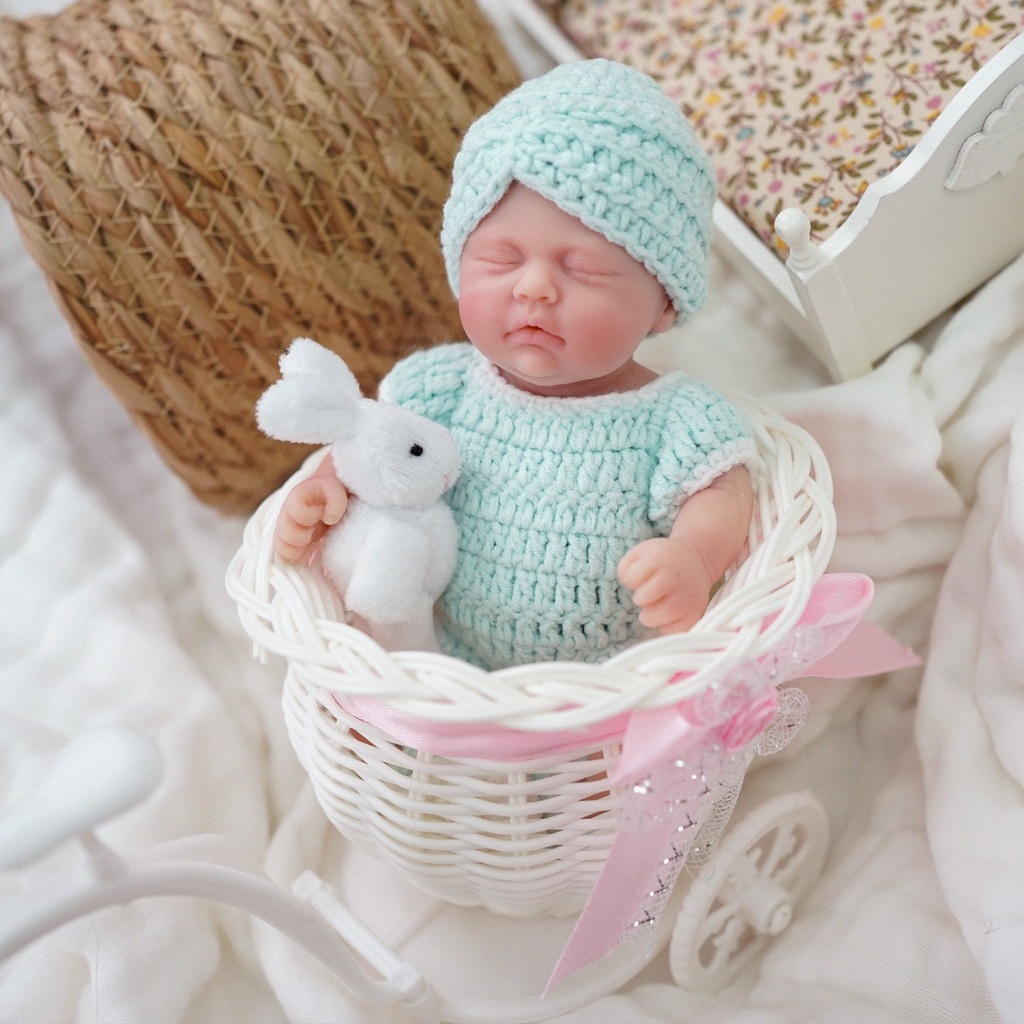 Bebê Reborn Boneca Silicone Sólido 20cm Menina Olho Fechado Brastoy