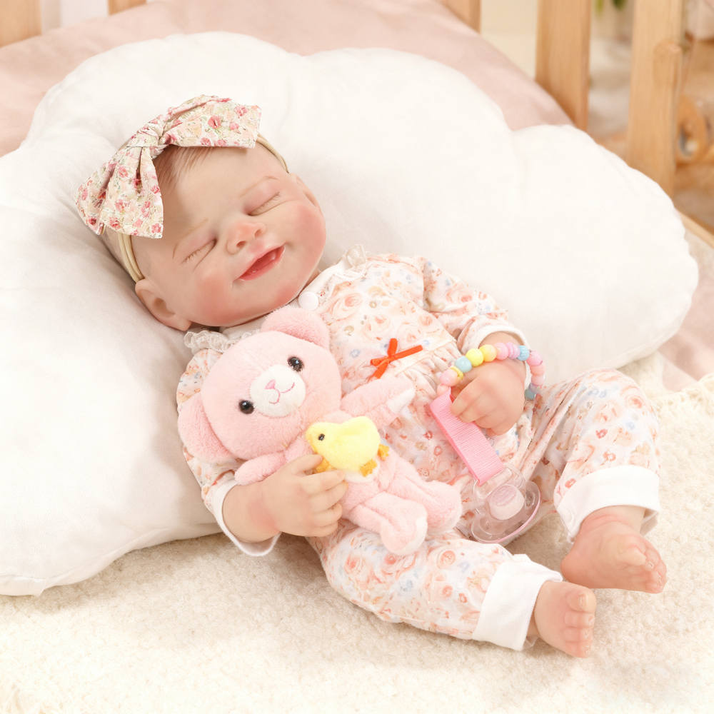 Bebê Reborn de Silicone Realista 48cm Menina Olho fechado Brastoy