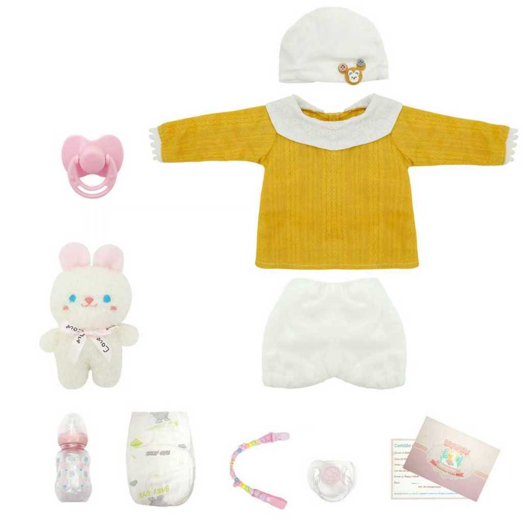 Bebê Reborn de Silicone Solido 35cm Menina Olho fechado Gordinho com Acessórios Brastoy