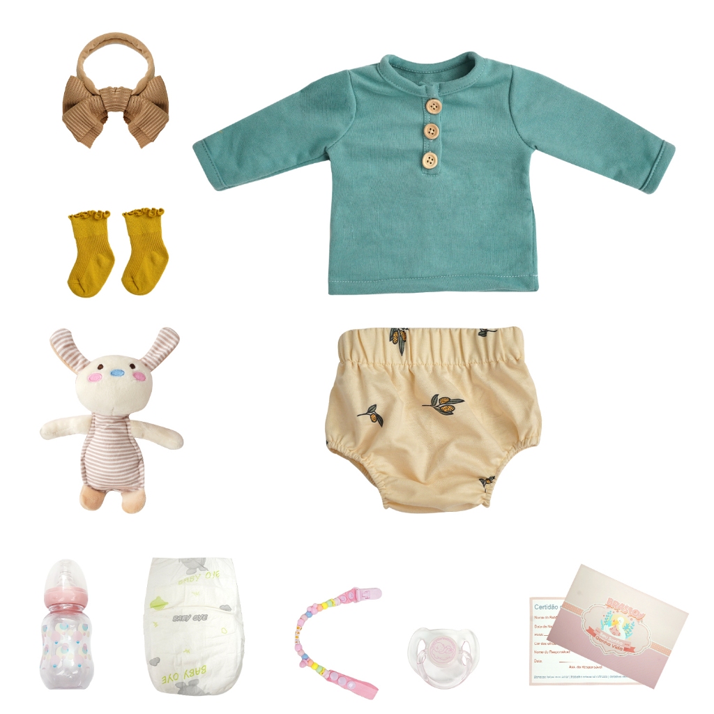 Boneca realista Certificado pelo INMETRO Material ecológico seguro, puro, muito macio, confortável, macio, real ao toque 1.Todos os Bebês Reborn são 100% artesanais e originais. 2.Vendemos muitos Bebês Reborn de dirversos tipos e novos, os quais são fabricados por materiais importados de alta qualidade e seguros. São as melhor companhias e amigos de seus bebês, abraços e beijos sem preocupação. Características: Este bebê é 100% artesanal. Produto: Boneca Altura da boneca: aproximadamente 48cm Peso da boneca: aproximadamente 1,0kg Gênero: Menina Material: 100% Silicone Idade mínima recomendada: 3 anos Tipo: Bebê Reborn Cor da pele: Simule crianças reais Cabeça: medidas de cabeça real de bebê, com o melhor acabamento do mercado. Olhos: não podem fechar ou piscar. Material do Corpo: completamente de silicone, muito macio, confortável ao toque, 100% ecológico. Roupa: como na imagem, super bonita e perfeita para a boneca. Ocasião: Dia das Crianças / Aniversários / Ano Novo / Presente de Natal. Lista de pacotes: 1X Boneca Reborn 1X Mamadeira 1X Chupetas Magnéticas 1X Fralda 1X Certidão de Nascimento 1X Faixa de Cabelo 1X Boneca de Pelúcia 1X Par de sapatos 1X Conjunto de roupas (idêntica as fotos)