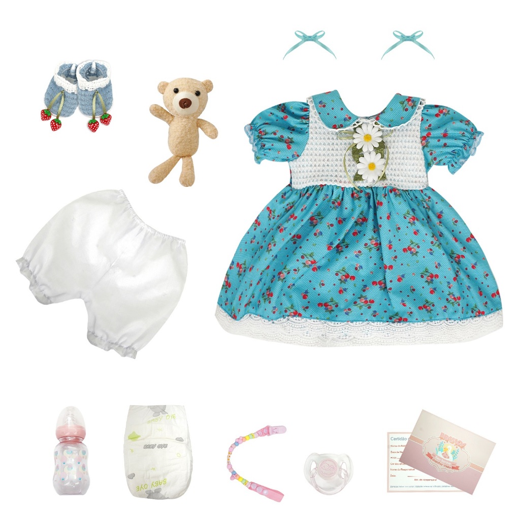 Bebê Reborn Menina Silicone 55cm Boneca Ohlo Azul com Acessórios Pode dar Banho Brastoy