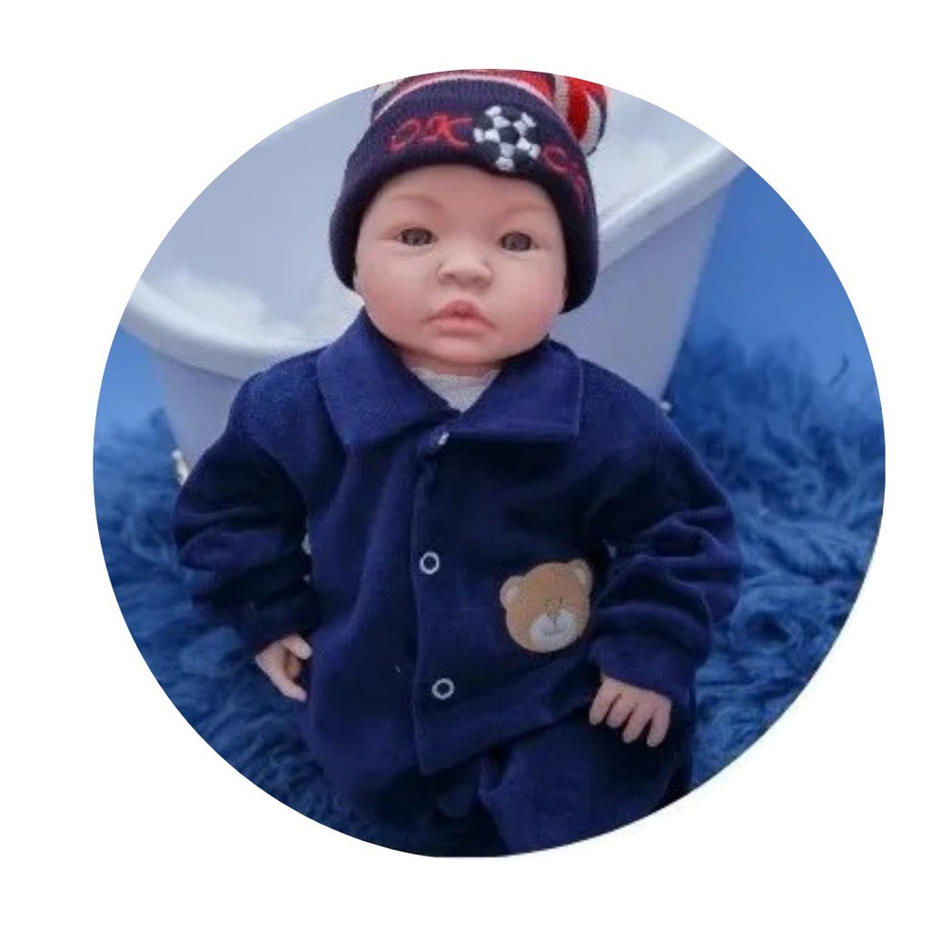 Descrição: Valor Unitário Cabeça, braços e pernas feito em vinil Corpo de pano Mede 45 cm Pesa aproximadamente 850 gr Acompanha: 1 boneco Reborn Menino; 1 roupinha conforme a foto ( pode variar de acordo com o estoque); 1 chupeta magnética; 1 mamadeira; 1 identidade; 1 passaporte; 1 ultrassom; 1 touca ( pode variar de acordo com estoque); 2 fraldas descartável; 1 certidão de nascimento azul; 1 cartão de vacinação. Qualquer outro objeto que apareça na foto mas não esteja na lista é meramente ilustrativo e não vai com a boneca. O MODELO DOS ACESSÓRIOS E TOUCA PODE VARIAR DE ACORDO COM A DISPONIBILIDADE EM ESTOQUE ENVIO IMEDIATO