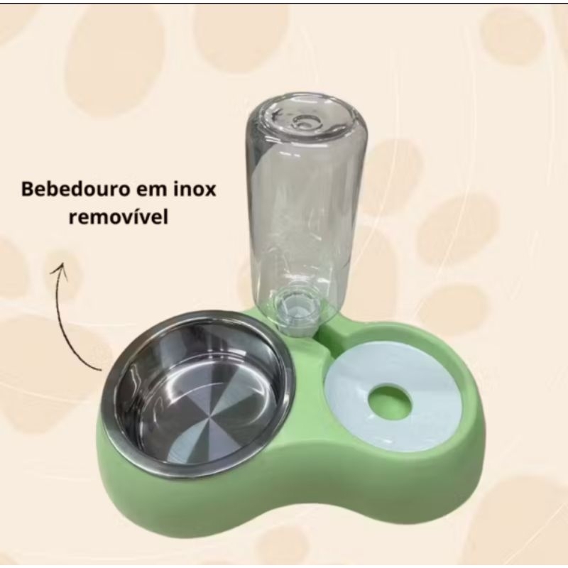 Bebedouro Automático e Comedouro Duplo para Pelos Longos, tigela em inox produto super Premium