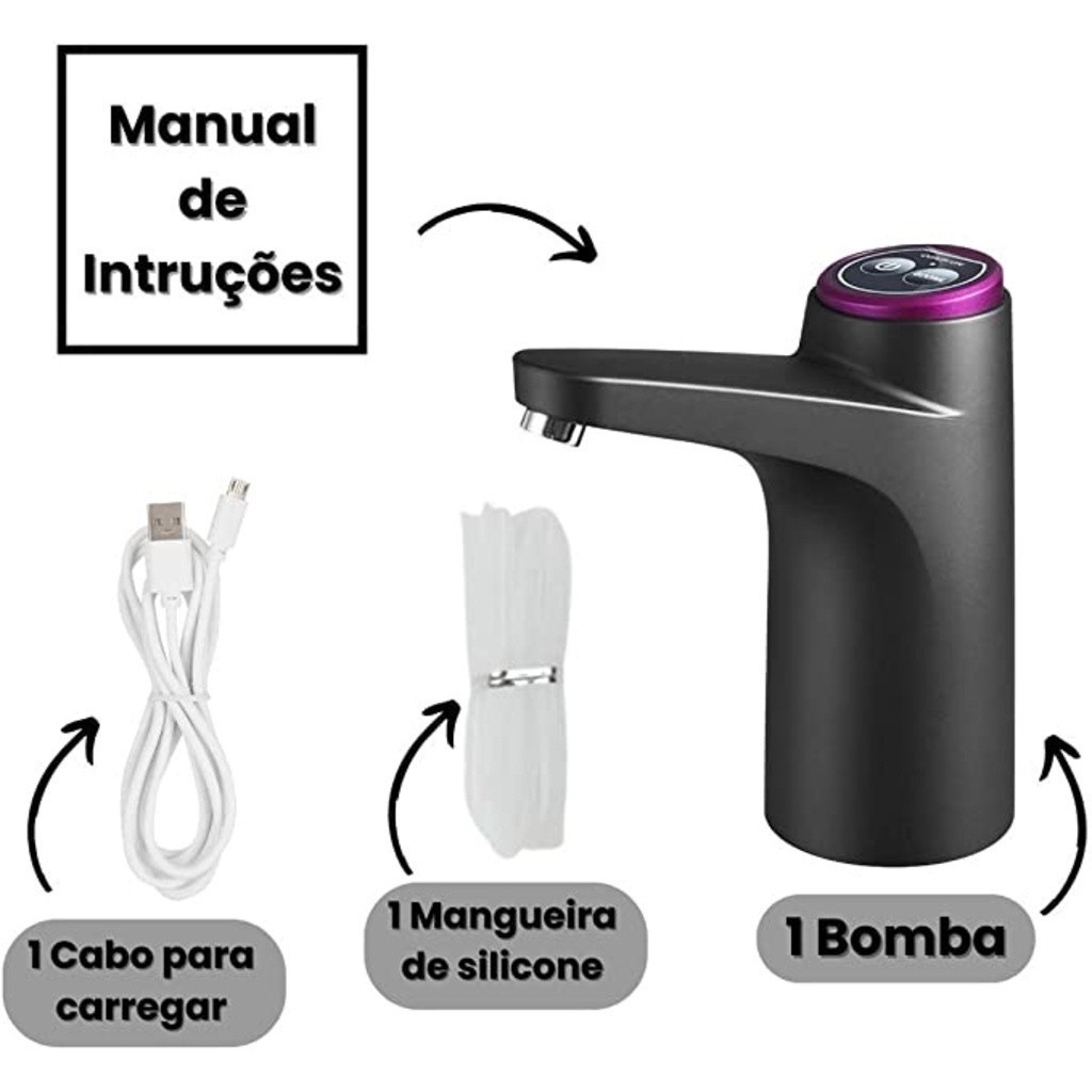 Envio imediato. Produto Pronta-Entrega Loja Nacional com os produtos no Brasil. Acabe com seus problemas, esqueça o peso de virar o galão no antigo bebedouro, apresentamos uma forma diferente e simples, portátil você pode levar em qualquer lugar e encaixar no galão tranquilamente, além de prático serve como peça de decoração em sua cozinha ou escritório. Especificações do Produto: - Bateria Forte: Dura até 8 galões de água de 20 Litros. Carga: 3 Horas. - Pode ser usada quando estiver carregando. - Uso Universal: Serve todos os tamanhos de galões e garrafões. - Materiais seguros: Plásticos (PP, ABS, EVA), Silicones, Alumínio, Bateria de Li-Ion, Circuito eletrônico. - Voltagem: Bivolt (110v e 220v) - Cor: Grafite Escuro. Itens inclusos: -1 Bomba filtro -1 Manual de Instrução -1 Cabo USB -1 Mangueira de Silicone Sobre o produto: Produto Novo | Original | Lacrado | Pronta Entrega. O Fufu Store agradecemos a sua visita, estamos ansiosos para conhecer você melhor. Se você ficou com alguma dúvida sobre o produto, fique à vontade de entrar em contato conosco pela Chat da Shopee. Enquanto isso, aproveite a oportunidade para saber mais sobre a nossa empresa. -