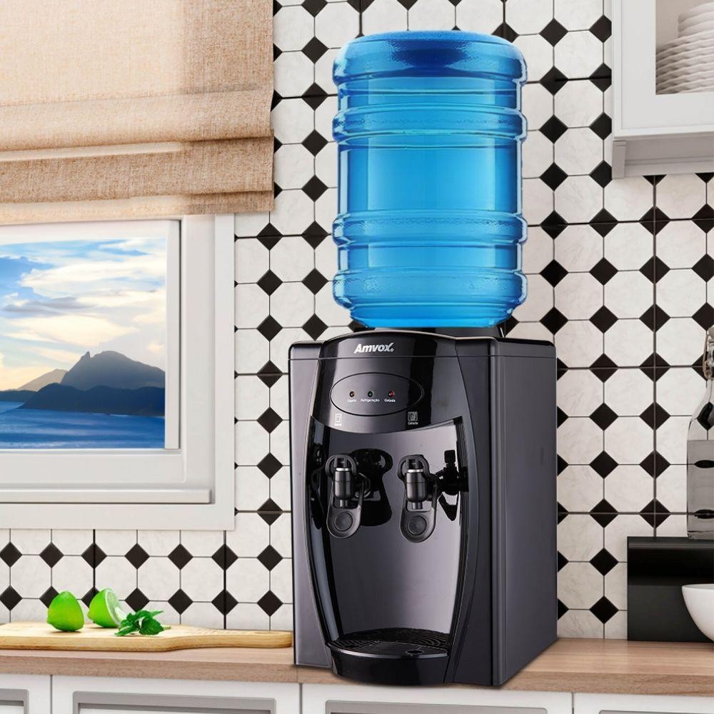 O Bebedouro de Mesa Amvox ABB510 é a escolha ideal para quem busca praticidade e eficiência na hora de se refrescar. Com um potente compressor de refrigeração, ele garante água realmente gelada, perfeita para os dias mais quentes. Além disso, conta com um design moderno e compacto, ideal para qualquer ambiente. REFRIGERAÇÃO POR COMPRESSOR: Garante água realmente gelada, com uma excelente capacidade de refrigeração de 1,6 litros por hora. ÁGUA GELADA E NATURAL: Atende diferentes preferências ao oferecer água na temperatura ambiente ou gelada. LED INDICATIVO: Um LED acende quando a água está devidamente gelada, proporcionando mais praticidade no uso. SENSOR DE FALTA DE ÁGUA: O sistema inteligente evita funcionamento a seco, aumentando a durabilidade do produto. BOTÕES INDEPENDENTES: Controle fácil para selecionar entre água gelada e natural de forma intuitiva. Com um desempenho eficiente e design elegante, o Bebedouro Amvox ABB510 é perfeito para garantir hidratação com conforto e conveniência no seu dia a dia! Especificações Cor: Preto Potência: 80W Material: Polietileno Garantia: 12 Meses do Fabricante Dimensões da Produto: Altura: 45,00cm x Largura: 29,00cm x Comprimento: 33,00cm ? Peso 8,6Kg Dimensões do Produto Embalado: Altura: 47,00cm x Largura: 29,00cm x Comprimento: 34,00 ? Peso: 9,2Kg Atenção: 1. Verifique a voltagem correta para o seu equipamento. Grande parte dos eletrodomésticos no Brasil está disponível em duas voltagens: 110V ou 220V. Certifique-se qual a voltagem de sua residência e selecione o produto conforme essa especificação. 2. Devido às normas da ABNT e às resoluções nº 13 de 2006, nº 2 de 2007 e nº 8 de 2009 do CONMETRO, os fabricantes estão mudando as tomadas para o novo padrão. Para utilizar este produto, será preciso adaptador ou a troca da tomada antiga. Não nos responsabilizamos por esta alteração.