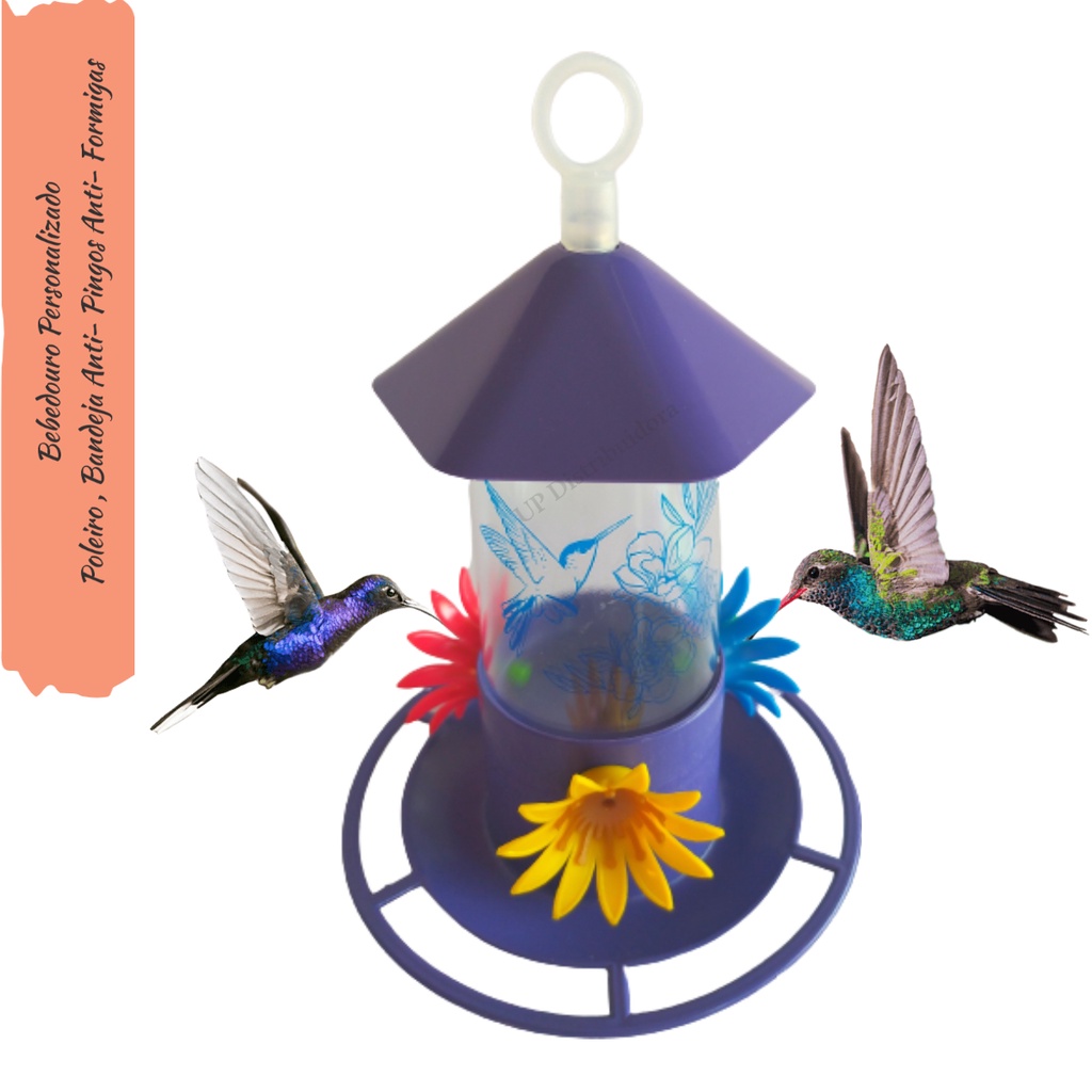 Bebedouro Externo Automatico Suspenso 200ml Personalizado - Beija Flor Colibri Aves em Geral