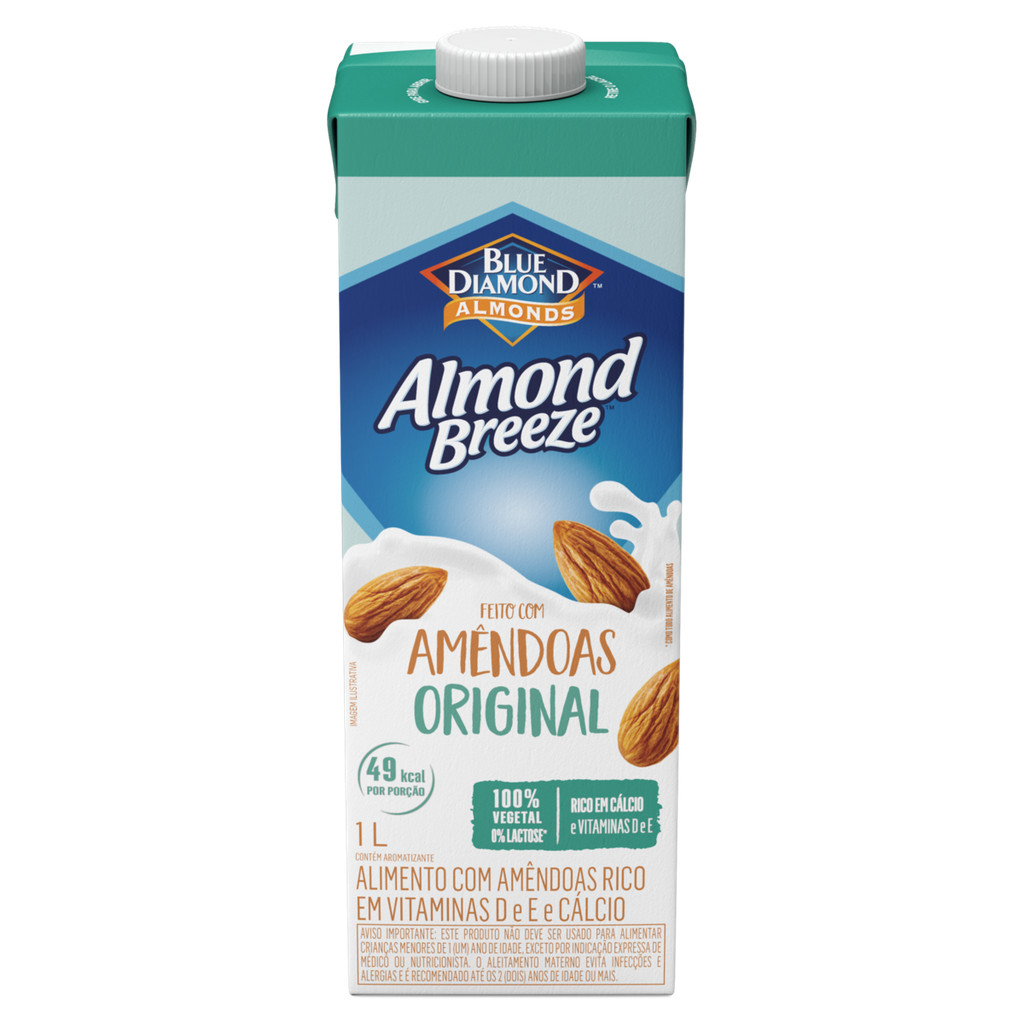 Feito com amêndoas da Califórnia, Almond Breeze Original é naturalmente sem lactose, rico em vitaminas e cálcio, delicioso e contém apenas 51 kcal por copo. (200 mL).A Blue Diamond Growers é uma cooperativa com mais de 3.000 produtores de amêndoas na Califórnia (EUA). Em 2010, a Blue Diamond Growers celebrou o seu 100º aniversário, tornando-se detentora de marcas líderes Globais: Blue Diamond Almonds e Almond Breeze. A cooperativa cultiva e colhe as amêndoas mais frescas, do final do verão até o início do outono, quando os frutos se tornam amarronzados. Depois de colhidas, retira-se a casca e armazena-se em locais secos e frescos, ou até em refrigeração. Dessa forma, conservam a qualidade superior desde o princípio até sua chegada ao consumidor.O Alimento com amêndoas Almond Breeze não contém derivados de leite de origem animal, soja, glúten e amendoim. É uma alternativa alimentar que, além de nutritiva, é também muito saborosa.Disponível na versão de 1 L e também em 250 mL, ainda mais prático!