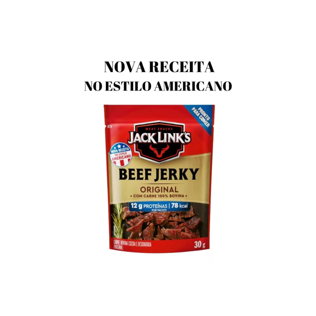 NESSE KIT VC LEVA OS BEEF TERIAKY ORIGINAL Jack Link's são os snacks de carne mais consumidos nos Estados Unidos. Não há nada mais delicioso como um "tira gosto" para acompanhar sua bebida preferida. Basta abrir o pacote e comer esse delicioso snacks. A Beef Jerky de Jack Link, é uma empresa americana fundada em 1986 por John 'Jack' Link. A idéia surgiu, numa caçada que costumava a fazer com a família e usou as receitas antigas de seu bisavô. A JACK LINK'S além de possuir instalações em vários Estados dos EUA, atua também na Europa, tendo adquirido em 2014, a divisão de "lanches de carne" da Uniliver, empresa com sede em Londres e Roterdã. E atualmente, a Jack Link's também chegou ao Brasil. Manipulação: São escolhidos os melhores cortes da carne bovina, logo após a carne é marinada e preparada com especiarias, defumada e em seguida embalada para que tudo chegue fresquinho para você. Marca: Jack Link's