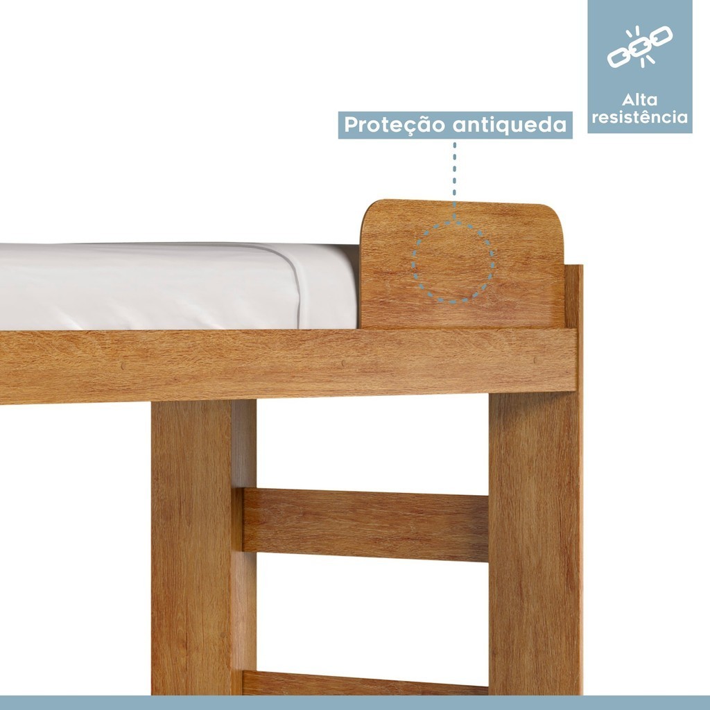 O Beliche Flórida 100% MDF é a escolha ideal para otimizar o espaço do quarto das crianças ou de hóspedes. Com design moderno e seguro, oferece duas camas confortáveis, além de ser resistente e durável. Sua estrutura em MDF garante a segurança necessária para o descanso tranquilo dos pequenos. O beliche é seguro para as crianças? Sim, a estrutura sólida e os materiais de qualidade garantem segurança para as crianças. O beliche é fácil de montar? Sim, o beliche é de fácil montagem, com instruções claras para auxiliar no processo. Estilo: Clássico Peso (kg): 48.39 Garantia: 06 Meses Altura (cm): 137 Acabamento: Pintura UV Largura (cm): 211 Possui Pés: Sim Tipo de Cama: Beliche Possui Portas: Não Altura dos Pés: 137 Comprimento (cm): 95.5 Possui Gavetas: Não Possui Rodízio: Não Suporta Até (kg): 240 Tamanho da Cama: Solteiro Tipo de Estrado: Removível Escala de Brilho: Fosco Material dos Pés: MDF Acompanha Colchão: Não Origem do Produto: Nacional Acabamento dos Pés: Pintura Ambiente Principal: Quarto Infantil Material da Escada: MDF Material Principal: MDF Possui Prateleiras: Não Possui Escrivaninha: Não Sapatas Niveladoras: Não Acompanha Cama Auxiliar: Não Possui Trava de Segurança: Sim Altura do Estrado até o Chão: 32 Peso Suportado por cada Cama: 120 Altura do Estrado Superior até o Chão: 125 Permite a Utilização de Cama Auxiliar: Sim Marca: Tigus Baby Cor: Amadeirado Cor do Produto: Amadeirado Itens Inclusos: 1 Beliche, kit ferragens e manual de montagem. Cor Predominante: Marrom Linha ou Coleção: Flórida Tamanho do Colchão Indicado (L x C): 88cmx188cm