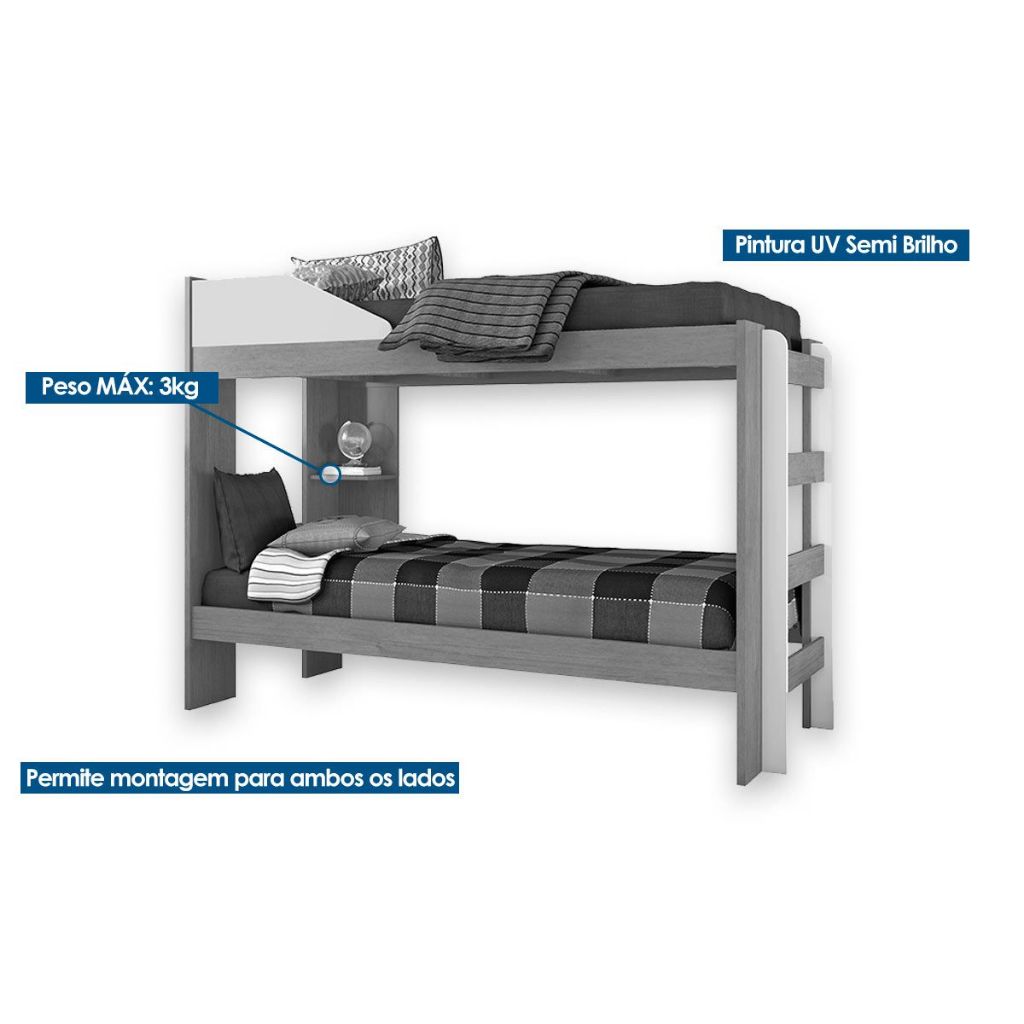 Beliche Indy Branco - Conquista Marca: Conquista Dimensões(Cm): Comprimento(Profundidade): 203,00cm x Largura: 97,50cm x Altura: 150,00cm Material de Estrutura - MDF/MDP Tipo de Pintura - Ultravioleta Tipo de Acabamento da Pintura - Semi Brilho Tamanho da Cama - Solteiro Diferenciais das Camas - Escada Lateral - Proteção Lateral Quantidade de Prateleiras - 1 Prateleira Montagem do Produto - Desmontável Certificação de Qualidade - Qualidade Aprovada Garantia - Garantia de 90 Dias Imagens Meramente Ilustrativas. Não nos responsabilizamos pela montagem/instalação dos produtos. Todas as informações divulgadas são de responsabilidade exclusiva do fabricante/fornecedor. -Verifique com os fabricantes do produto e de seus componentes eventuais limitações à utilização de todos os recursos e funcionalidades - Confira as dimensões do produto e analise se irão passar normalmente por elevadores, portas, escadas e corredores, pois não nos responsabilizamos caso o produto necessite durante a entrega de: Desmontagem, subir escadas ou ser transportado por guincho, cordas para apartamentos. A entrega limita-se ao descarregamento em local que tenha e ofereça total facilidade de acesso normal; - Só fazemos entregas por transportes rodoviários. Não realizamos entregas por transportes fluviais, aéreos e outros diferente de rodoviário. Não realizamos entregas na região norte: Amapá, Amazonas, Pará, Roraima e Acre; - Temos áreas com restrição e dificuldades que os transportadores rodoviários não atendem. Área de difícil acesso, área de risco, área rural, áreas fluviais, estradas não pavimentadas; - Sendo assim, caso seu endereço esteja em área restrita de entrega, a retirada de sua compra deverá ser realizada no CD do transportador ou indicar no momento da compra um endereço entrega fora da área restrita; - Caso realize pedido com entregas em locais de difícil acesso ou áreas com restrição e dificuldades que os transportadores e proprio correios não atendem, a compra sera cancelada pela Costa Rica Colchões, com a devida comunicação e estorno do pagamento ao cliente.