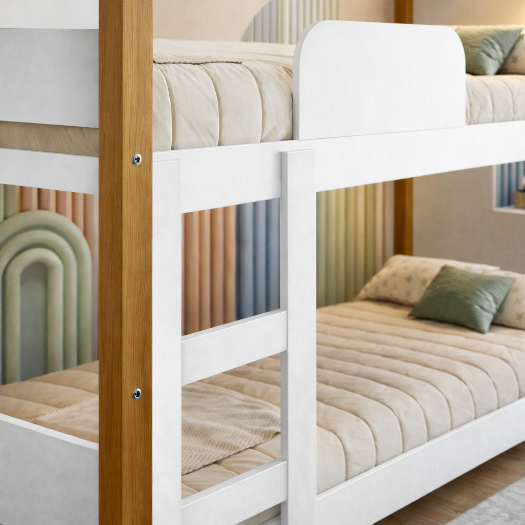 Beliche Infantil com 2 Colchões Incluso Magia Branco Seguro Quarto Menino e Menina Moderno Compacto