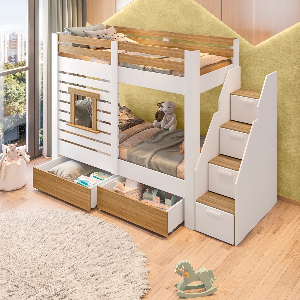 Beliche Infantil Star Plus com Janela Casatema MadeiraOriginals Branco/Montana