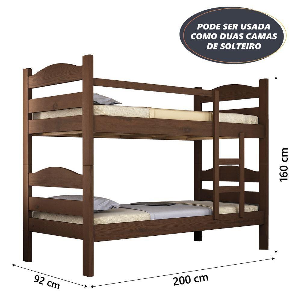 Beliche Madeira Maciça Rubi Pederpinus Imbuia Imbuia A Beliche Rubi oferece qualidade, segurança e versatilidade. Produzida em madeira Pinus maciça tratada, garante durabilidade e um acabamento refinado com pintura acetinada. Conta com travas opcionais para maior segurança na cama superior e uma escada prática para facilitar o acesso. Além disso, pode ser utilizada como beliche ou transformada em duas camas de solteiro, adaptando-se perfeitamente às suas necessidades de espaço e funcionalidade. MEDIDAS: [ A ] = 160 cm [ L ] = 92 cm [ P ] = 200 cm PESO: 45kg PESO SUPORTADO POR CAMA: 100 kg Características MODELO: Beliche Madeira Maciça Rubi MARCA: Pederpinus COR: Imbuia ACABAMENTO: Acetinado MATERIAL: Pinus SISTEMA DE MONTAGEM: Parafusos TAMANHO: Para colchões de solteiro: 0,88m (Solteiro) GARANTIA: 3 Meses DIFERENCIAL: Escada pode ser montada de ambos os lados, camas separadas. A Esplanada Móveis se responsabiliza pela entrega dos produtos adquiridos até a porta de entrada ou portaria do endereço indicado, se a portaria do condomínio permitir, as entregas são efetuadas no piso térreo e é de responsabilidade do cliente a locomoção da mercadoria até seu apartamento ou casa. Confira as dimensões do produto e certifique-se de que estão adequadas aos elevadores, portas e corredores do local da entrega. Não fazemos a montagem, desmontagem do produto e/ou portas e janelas, transporte pela escada ou içamento pelo lado de fora do prédio. Não está incluso no serviço de entrega o deslocamento até o interior do apartamento, com ou sem elevador, ou deslocamento em locais de difícil acesso como escadarias. Caso o cliente necessite de entrega dentro das dificuldades mencionadas, deverá entrar em contato para análise e cotação do valor do serviço. Certifique-se de tudo antes de finalizar a compra, evitando assim futuros desagrados ou imprevistos com a entrega. MEDIDAS:: [ A ] = 160 cm [ L ] = 92 cm [ P ] = 200 cm | PESO:: 45kg | PESO SUPORTADO POR CAMA:: 100 kg | MARCA:: Pederpinus | MATERIAL:: Pinus | SISTEMA DE MONTAGEM:: Parafusos | TAMANHO:: Para colchões de solteiro: 0,88m (Solteiro) | MODELO:: Beliche Rubi | COR:: Imbuia | ACABAMENTO:: Acetinado | GARANTIA:: 3 Meses | ALTURA: 160 cm | LARGURA: 92 cm | PROFUNDIDADE: 200 cm | TIPO DE CAMA: Beliche | TAMANHO DA CAMA: Solteiro | REQUER MONTAGEM: Sim Cor: Imbuia