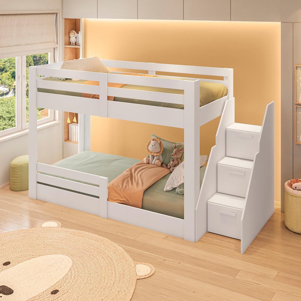 Para tornar o quarto mais descontraído e extremamente funcional a Beliche Star Plus não pode deixar de ser sua escolha. Extremamente moderna, com design exclusivo, ideal para quarto pequeno. E ainda para completar esse luxo de quarto completíssimo, temos 4 portas com muito espaço para organizar os objetos e roupas. Sua estrutura é rente ao chão, o que permite a criança ser mais independente, o método visa a aprendizagem da criança com sua curiosidade natural, explora e dá ainda mais vazão à sua necessidade de aprender. O quarto será o canto favorito da casa! Garantia: 03 Meses Acabamento: BP Tipo de Cama: Beliche Montessoriano Possui Portas: Sim Possui Gavetas: Não Tamanho da Cama: Infantil Acompanha Dossel: Não Acompanha Colchão: Não Ambiente Principal: Quarto Infantil Fabricação Própria: Sim Material Principal: MDF Permite a Utilização de Cama Auxiliar: Não Marca: Casatema Tonalidade: Branco Cor do Produto: Branco Cor Predominante: Branco Linha ou Coleção: Star Plus