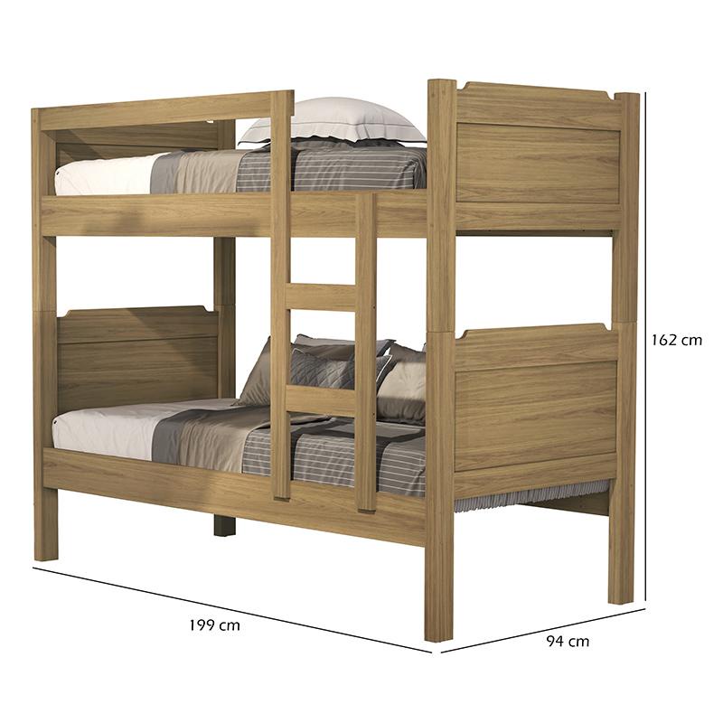 Modelo: Star; Tamanho de cama: Solteiro; Tipo de cama: Beliche; Material da cama: MDF; Acabamento: Pintura UV; Altura: 162 cm; Largura: 94 cm; Profundidade: 199 cm; Quantidade de cama: 02; Colchão Indicado: 88 cm x 188 cm; Quantidade de gavetas: Não se aplica; Quantidade de portas: Não se aplica; Com puxador: Não se aplica; Com prateleiras: Não se aplica; Pé de apoio: Não se aplica; Peso suportado por cama: 80 kg; Requer montagem: Sim (kit montagem incluso); Condição do item: Novo; É kit: Não; Altura da embalagem: 29cm; Largura da embalagem: 34 cm; Comprimento da embalagem: 192 cm; Peso: 53,900 Kg; Embalagem do envio: Papelão e plástico; Informações adicionais: - Os objetos que ambientam as fotos não acompanham o produto; - O produto será entregue desmontado; - É de inteira responsabilidade do cliente a montagem do produto e/ou instalação, custos de transporte por escadas e/ou elevadores, guincho ou içamento, assim como possíveis irregularidades provenientes de manuseio inadequado; - Embora o produto acompanhe o manual de montagem, verifique a complexidade antes de decidir montá-lo sozinho, recomendamos que contrate um profissional de sua confiança; - Fique atento, nossas cores podem sofrer alterações dependendo do seu monitor; - ANTES DE MONTAR O SEU PRODUTO, certifique-se que todas as instruções dispostas no manual, bem como todas as ferragens descritas, estejam presentes dentro da embalagem. Verifique se há alguma peça danificada, caso esteja, prestaremos a devida assistência dentro do prazo da garantia.