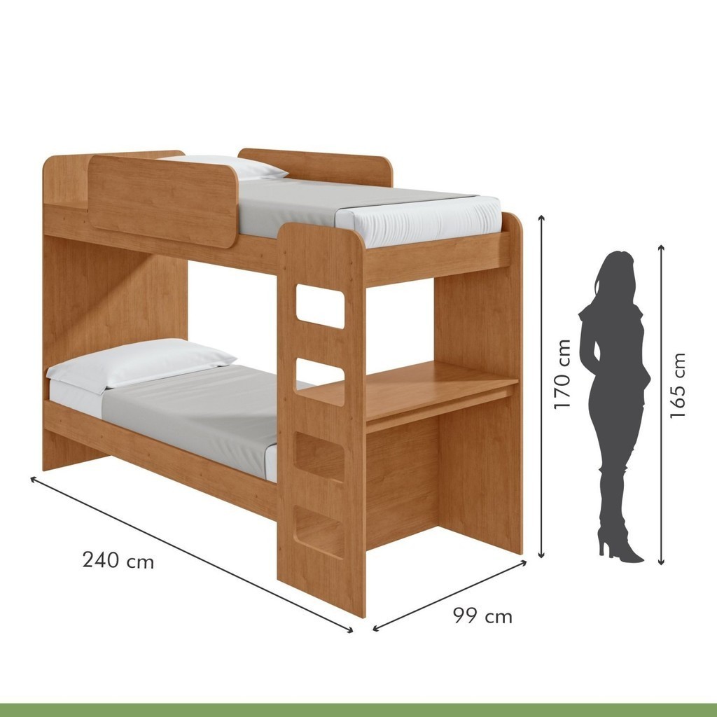 A Beliche com escrivaninha, cantos arredondados e LED embutido é a escolha perfeita para quem busca funcionalidade, conforto e estilo no quarto! Com design moderno e seguro, ela traz a inovação dos cantos arredondados para evitar impactos, enquanto as luzes de LED garantem uma iluminação suave e aconchegante. Além disso, a escrivaninha acoplada é super prática, oferecendo um espaço extra para estudos ou trabalho. Ideal para quartos pequenos, ela organiza e transforma o ambiente, deixando tudo mais prático e charmoso! Como funciona a iluminação de LED? A iluminação LED embutida proporciona uma luz suave e aconchegante, ideal para o ambiente. Posso usar a beliche para quartos pequenos? Sim! Ela é perfeita para otimizar o espaço de quartos pequenos ou compartilhados. Estilo: Moderno Peso (kg): 94 Garantia: 03 Meses Altura (cm): 170 Acabamento: Pintura UV Largura (cm): 99 Possui Baú: Não Possui Pés: Não Tipo de Cama: Beliche Possui Nichos: Não Possui Portas: Não Suporta Até (kg): 240 Possui Espelhos: Não Tamanho da Cama: Solteiro Tipo de Estrado: Fixo Escala de Brilho: Fosco Serviço Montagem: 114259443 Acompanha Colchão: Não Origem do Produto: Nacional Ambiente Principal: Quarto Material da Escada: MDP Material Principal: MDF/MDP Possui Prateleiras: Não Material do Estrado: MDF Possui Escrivaninha: Sim Acompanha Cama Auxiliar: Não Possui Trava de Segurança: Sim Peso Suportado por cada Cama: 46 Informações Complementares (Novo): Painel da peseira com escrivaninha acoplada; Dispositivo antirruído. Altura do Estrado Superior até o Chão: 140 Permite a Utilização de Cama Auxiliar: Sim Marca: Móveis Lopas Cor: Amêndoa Clean Cor do Produto: Amêndoa Clean Itens Inclusos: 1 Beliche e manual de montagem. Cor Predominante: Marrom Linha ou Coleção: Olga Medida da Escrivaninha (A x L x P): 75cmx95,3cmx49cm