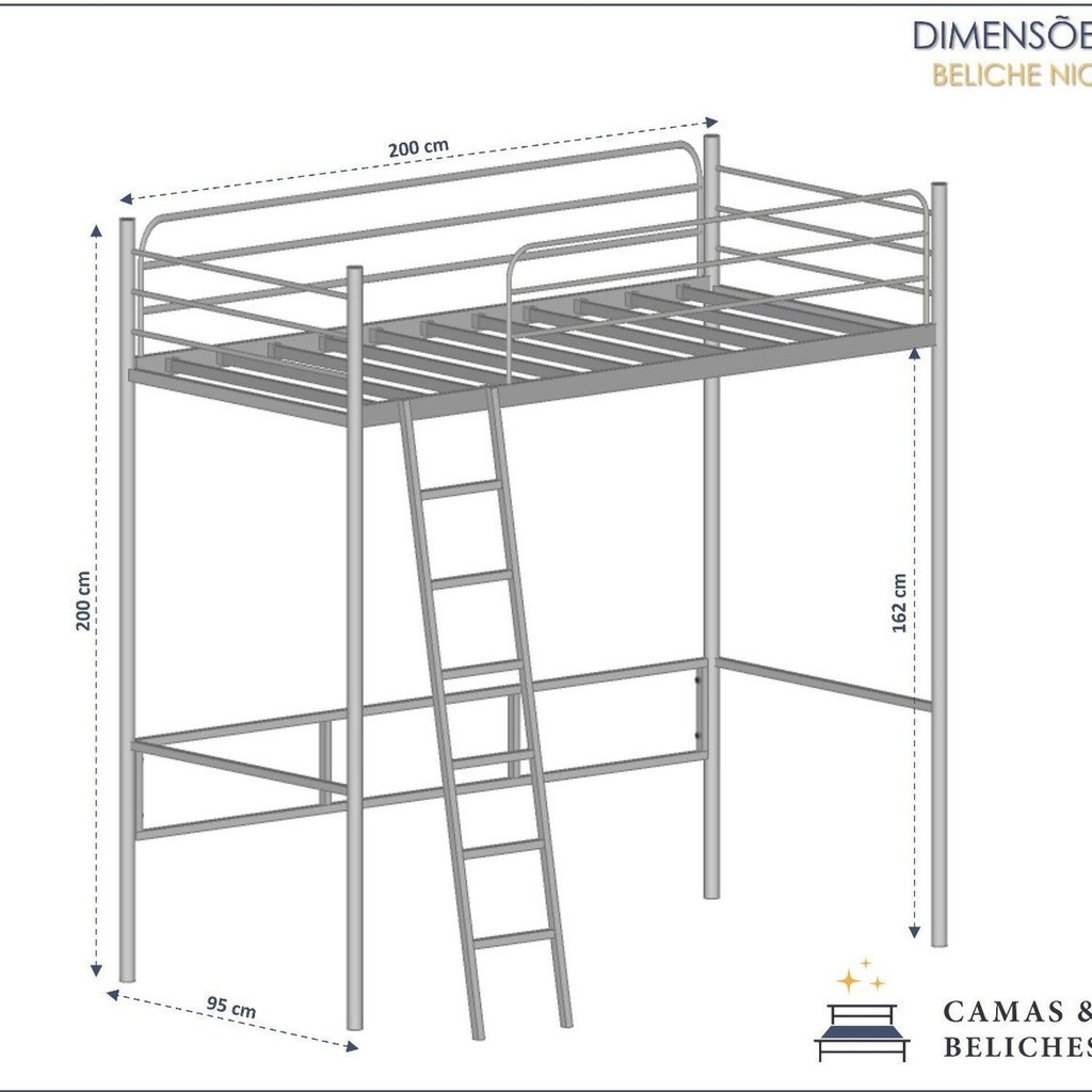 Nosso beliche Nick foi desenvolvido para você que precisa otimizar seu espaço. Por ser uma cama suspensa você pode utilizar a parte inferior como área de estudo ou de trabalho, tornando assim seu ambiente mais versátil. Todo em ferro, incluindo os estrados e com pintura Epóxi (Eletrostática) para uma qualidade superior do produto, proporcionando acabamento perfeito. Nesse modelo enviamos uma peça de uso opcional para fixação do beliche na parede. Medidas Altura 2mt Comprimento 2mt largura 95cm Do chão até o estrado 1.60 Grade 36cm Largura da escada 37cm O colchão para esse modelo é o de solteiro 1.88x88 Montagem super fácil, questão de minutos já tem seu beliche prontinho para uso. Acompanha manual para montagem. Estilo: Moderno Peso (kg): 42 Garantia: 12 Meses Altura (cm): 190 Acabamento: Pintura Largura (cm): 97 Possui Baú: Não Possui Pés: Sim Possui Grade: Sim Tipo de Cama: Beliche Possui Nichos: Não Possui Portas: Não Altura dos Pés: 1 Comprimento (cm): 200 Possui Gavetas: Não Possui Rodízio: Não Suporta Até (kg): 150 Possui Espelhos: Não Tamanho da Cama: Solteiro Tipo de Estrado: Removível Escala de Brilho: Semi-Fosco Material dos Pés: Plástico Acompanha Colchão: Não Origem do Produto: Nacional Acabamento dos Pés: Poliéster Ambiente Principal: Quarto Material da Escada: Ferro Material Principal: Aço Possui Prateleiras: Não Possui Escrivaninha: Não Sapatas Niveladoras: Não Acompanha Cama Auxiliar: Não Possui Trava de Segurança: Sim Altura do Estrado até o Chão: 1.5 Peso Suportado por cada Cama: 150 Informações Complementares (Novo): Beliche Suspenso Nick Altura do Estrado Superior até o Chão: 1.5 Permite a Utilização de Cama Auxiliar: Sim Marca: Camas e Beliches Cor Flex: Não Cor: Preto Cor do Produto: Preto Itens Inclusos: 1 Beliche, kit ferragens e manual de montagem Cor Predominante: Preto Linha ou Coleção: Beliche Tamanho do Colchão Indicado (L x C): 1.88x88