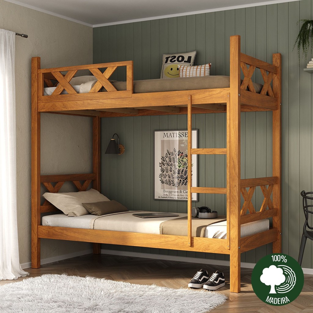 Qualidade e tradição dos móveis de Gramado você encontra nesse produto! Descubra a versatilidade do beliche x da Móveis Nathalia. Integrando a beleza natural da madeira, este conjunto oferece uma harmoniosa fusão entre modernidade e tradição, ideal para otimizar espaços com estilo. Com produção 100% em madeira de reflorestamento próprio, cada peça combina praticidade, resistência e consciência ambiental. Estilo: Clássico Peso (kg): 64 Garantia: 03 Meses Altura (cm): 175 Acabamento: Verniz Largura (cm): 200 Possui Pés: Não Possui Grade: Sim Tipo de Cama: Beliche Possui Portas: Não Possui Gavetas: Não Suporta Até (kg): 300 Número de Camas: 2 Profundidade (cm): 98 Tipo de Estrado: Removível Escala de Brilho: Fosco Acompanha Colchão: Não Origem do Produto: Nacional Ambiente Principal: Quarto Material da Escada: Madeira Maciça Material Principal: Madeira Maciça Possui Prateleiras: Não Tipo de Madeira Maciça: Eucalipto Acompanha Cama Auxiliar: Não Possui Trava de Segurança: Não Altura do Estrado até o Chão: 27.5 Peso Suportado por cada Cama: 150 Altura do Estrado Superior até o Chão: 126 Permite a Utilização de Cama Auxiliar: Sim Marca: Moveis Nathalia Cor do Produto: Mogno Mel Itens Inclusos: 1 beliche x e Kit de ferragens Cor Predominante: Marrom Tamanho do Colchão Indicado (L x C): 88X188