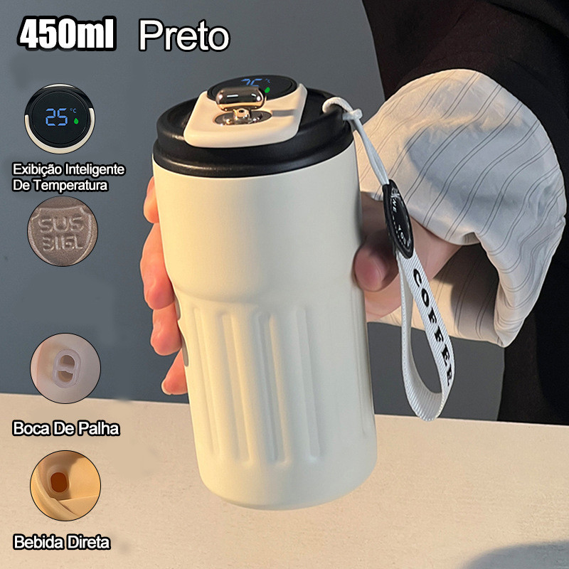 Belifou 450ml Copo Térmico Cafe personalizado Inox Portátil tampa Com LED Temperatura Antivazamento