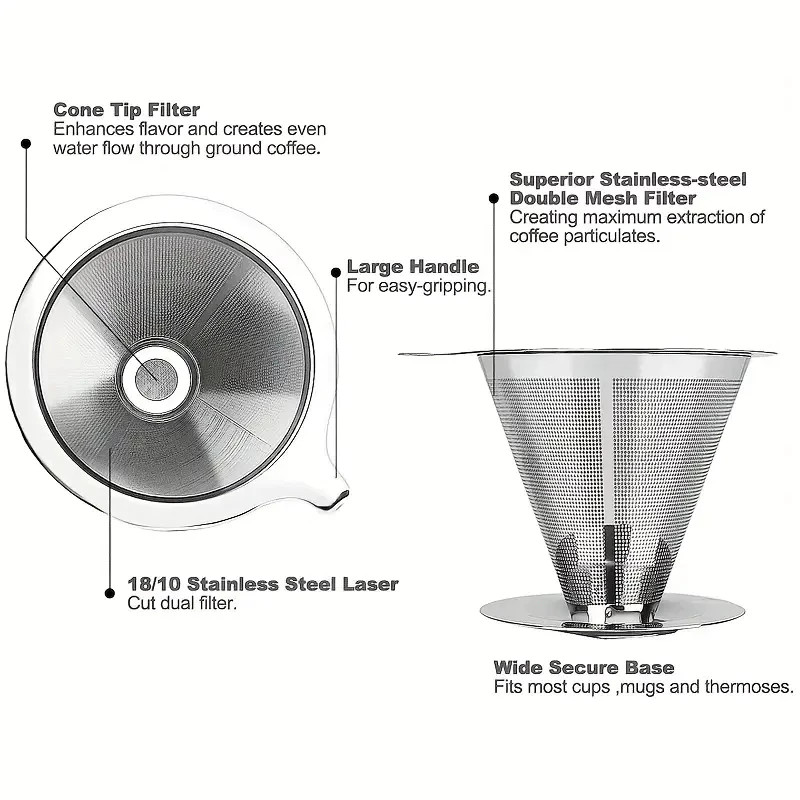 🥳Bem-vindo à loja Belifou Talheres, siga a loja para obter mais cupons🎟️ 🥰Se você tiver alguma dúvida sobre o produto, por favor deixe UMA Mensagem para o serviço ao cliente e nós responderemos a tempo! 🚚Envio em até 12 horas !!!!Observe que o preço de R$ 29,99 inclui: 1 filtro de café de aço inoxidável Coador de Café em Aço Inox para preparo de Café Coado. Tamanho médio: prepara 4 a 6 xícaras de café! ----------------------------------------------------- Características: Material do Filtro: Aço Inox 304 Diâmetro Interno: 12.3*9*10 cm ***Super Prático e Fácil de Usar e Limpar! Não precisa de Filtro! *** Instruções para um café perfeito: A passagem da água pelo pó de café de maneira uniforme resulta em uma bebida mais suave, com doçura e acidez acentuadas adequadamente. A moagem do café deve ser média/fina e a quantidade ideal de pó é de 40/50 g para 500 ml de água, suficiente para café diário. Dicas: Para obter melhores resultados, o tempo de preparo deve ser de aproximadamente 3 minutos. Despeje 200 ml de água fervida e mexa com uma colher pequena. Em seguida, despeje mais 300 ml da água e mexa novamente. Despeje o restante da água e mexa até acabar de coar.