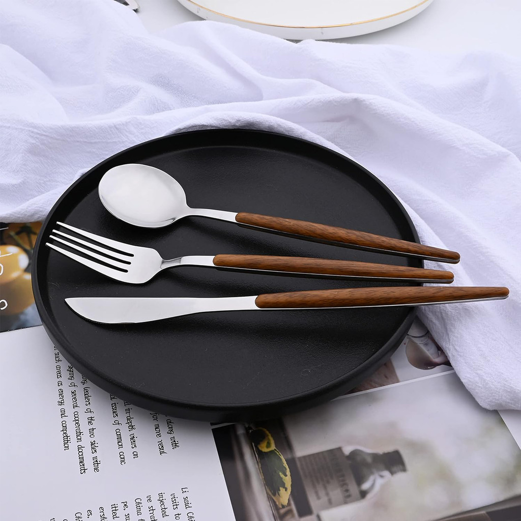 Belifou Kit 24 Jogo De Talheres Aço Inoxidável 416 Prata Alças De Madeira - Diana