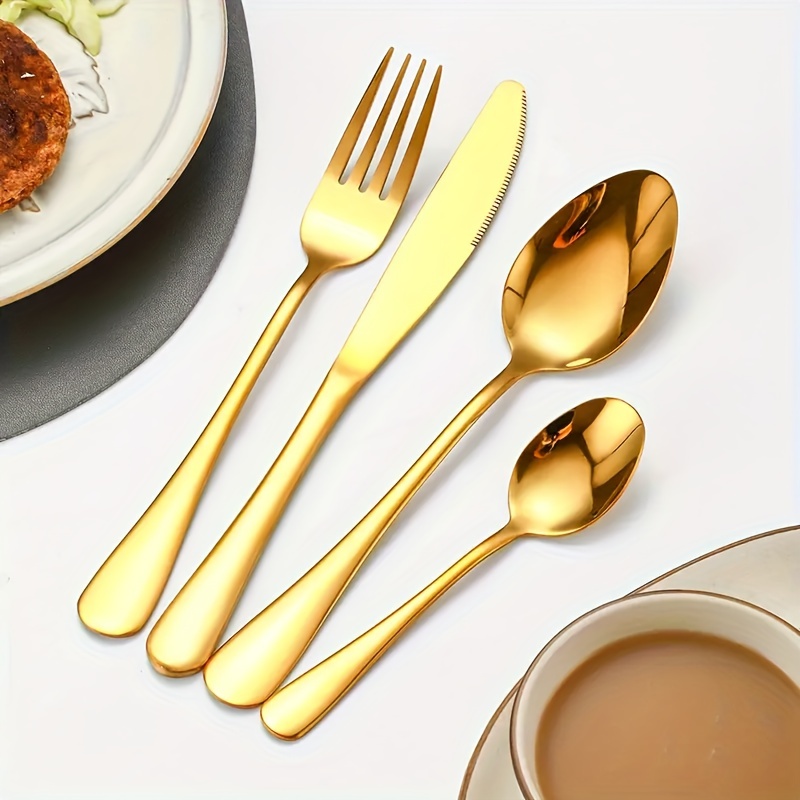 Belifou Kit 24 Jogo De Talheres Para Bife Aço Inoxidável 416 Dourados Com Colher Pequena