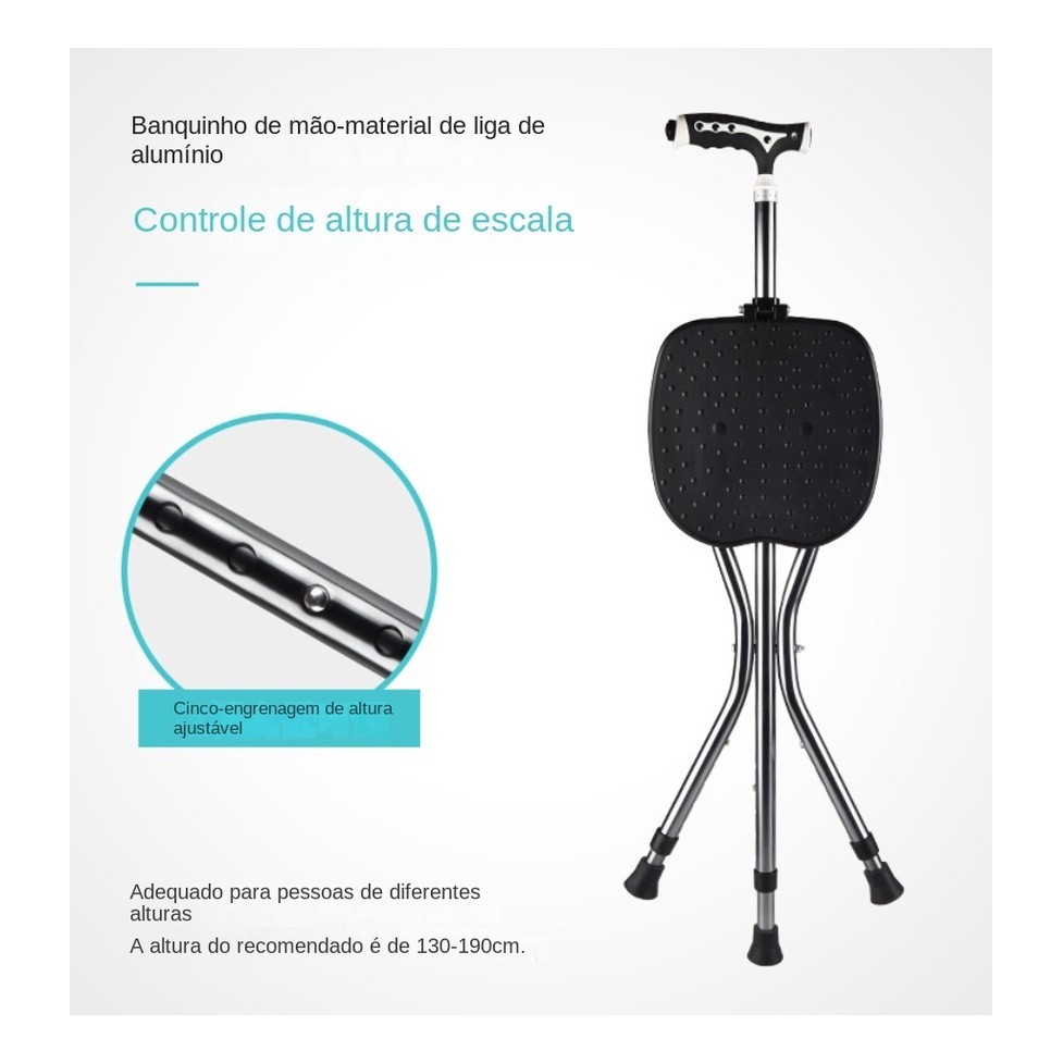 Bengala Com Luz Almofada Cadeira Dobrável Idoso Deficiente 200kg Alta qualidade