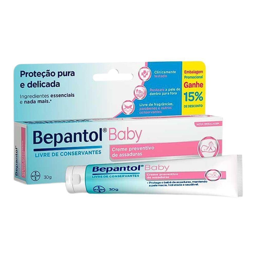 Bepantol Baby Creme Preventivo de Assaduras 30g: Dexpantenol e Barreira Protetora O Bepantol Baby Creme Preventivo de Assaduras de 30g é essencial para a proteção diária da pele delicada do bebê. Sua fórmula suave e rica contém Dexpantenol (Pró-Vitamina B5), que acelera a regeneração da pele, e Lanolina, que forma uma barreira transparente e duradoura. A barreira protetora isola a pele da umidade, urina e fezes, prevenindo o surgimento de assaduras e irritações. O Bepantol Baby hidrata profundamente, mantendo a pele macia. Livre de perfume, corantes e conservantes. Bisnaga de 30g prática para levar na bolsa. Uso diário seguro. Barreira e Regeneração: Dexpantenol e Lanolina: Regeneração e barreira protetora transparente.Prevenção de Assaduras: Proteção eficaz contra umidade e atrito. Fórmula Suave: Sem perfume e ideal para peles sensíveis. 30g: Tamanho prático para uso diário. Aplique uma camada generosa na pele limpa e seca a cada troca de fralda. A proteção e o cuidado que mantêm a pele do seu bebê macia e livre de assaduras.