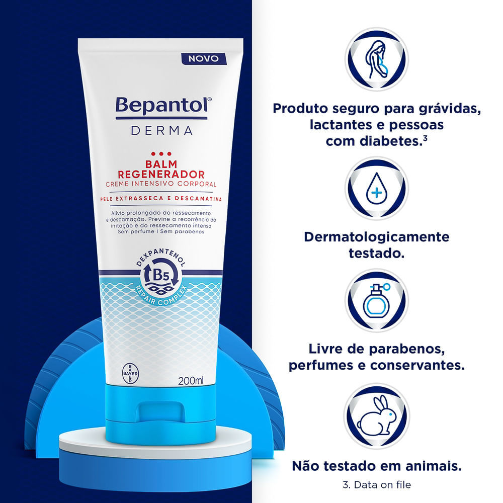 BEPANTOL DERMA BALM REGENERADOR CORPORAL O novo Bepantol Derma Balm Regenerador 200ml oferece uma hidratação intensa, com alívio imediato e prolongado do ressecamento. Sua formulação contém o novo Dex