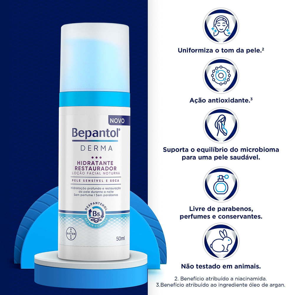 | Bepantol Derma Hidratante Restaurador Loção Facial Noturna 50ml este produto | R$ 88,99 | — | 4.6/5 | — |
