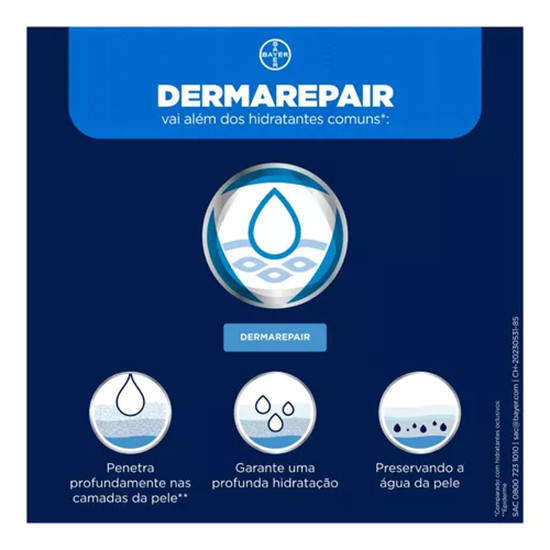 KIT COM 5 UNIDADES. Bepantol Derma Creme Hidratante Intenso Toque Seco - Com alta concentração de dexpantenol que auxilia no processo de hidratação intensa e regeneração profunda da pele - Ideal para usar a qualquer hora do dia e em áreas que merecem um cuidado especial como rosto, pescoço, mãos e tatuagens - Manter a rotina de hidratação é essencial para a saúde da pele.Perguntas FrequentesQual é o principal componente dos produtos Bepantol® Derma?O principal componente é a pró-vitamina B5 (dexpantenol) que é um eficiente agente de hidratação e auxilia na restauração natural da pele.Qual é o principal componente dos produtos Bepantol® Derma?O principal componente é a pró-vitamina B5 (dexpantenol) que é um eficiente agente de hidratação e auxilia na restauração natural da pele.O uso da linha Bepantol® Derma é aconselhável a partir de qual idade?Não há contraindicação de idade, sua fórmula segura é dermatologicamente testada.Para quais tipos de pele os produtos Bepantol® Derma são aconselhados?Bepantol® Derma é aconselhável para qualquer tipo de pele que tenha necessidade de hidratação.Há contraindicação de uso de Bepantol® Derma e protetor solar?Não, os produtos da linha Bepantol® Derma não possuem contraindicação de uso conjunto com protetor solar.Posso usar Bepantol® Derma Creme para hidratar os lábios?Sim, pode. Porém, a linha Bepantol® Derma possui a apresentação Bepantol® Derma Regenerador Labial, que foi especialmente desenvolvida para os lábios que, além do dexpantenol, tem vitamina E em sua fórmula.Os produtos Bepantol® Derma podem ser utilizados por gestantes?Sim, não há contraindicação para gestantes.Quantas vezes por dia posso aplicar Bepantol® Derma?A aplicação deve ser feita quantas vezes julgar necessário para repor a hidratação da pele e/ou do cabelo.Por que os produtos Bepantol® Derma não têm perfume?As fórmulas da linha Bepantol® Derma contém somente o necessário para repor a hidratação da pele e do cabelo, sem adição de conservantes, corantes e perfumes.Bepantol® Derma clareia as manchas do rosto e as olheiras?Nenhum produto da linha Bepantol® Derma tem ação clareadora. Seu poder hidratante pode melhorar a aparência do rosto e da região abaixo dos olhos, deixando-a com aparência mais saudável.Bepantol® Derma ajuda a secar espinhas?Nenhum produto da linha Bepantol® Derma tem ação secativa sobre as espinhas.Bepantol® Derma é recomendado para a pele masculina?Os produtos da linha Bepantol® Derma são recomendados para hidratação da pele, lábios e cabelos, independente do sexo.MODO DE USAR: Aplique uma fina camada sobre a pele e espalhe delicadamente.