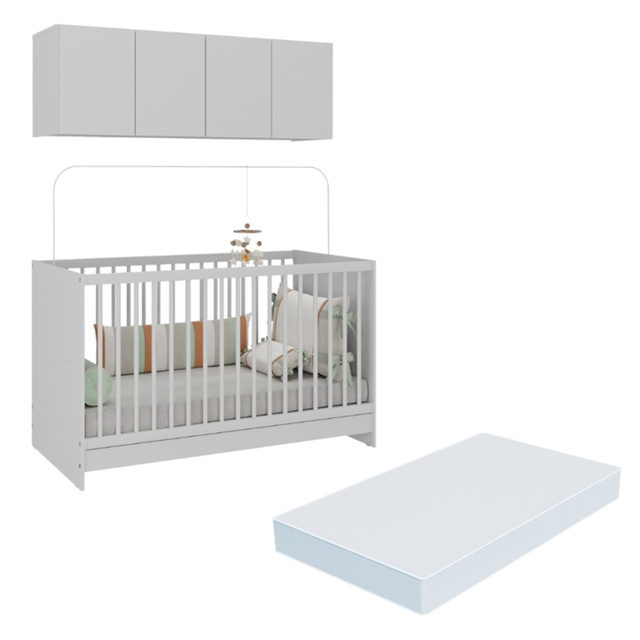 Berço 3 em 1 com Colchão e Armário Aéreo 4 portas Multimóveis MP4149
