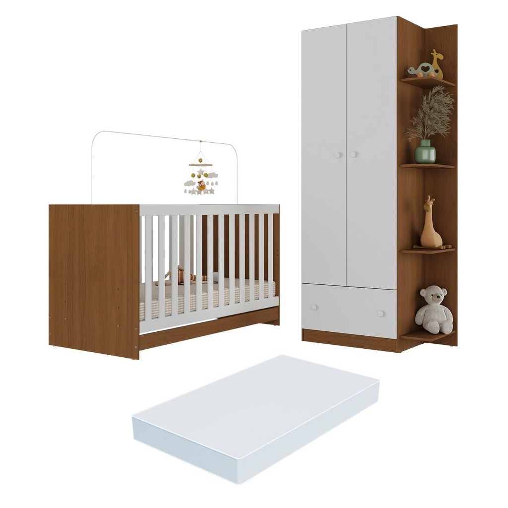 Berço 3 em 1 com Guarda-Roupas 2 Portas 1 Gaveta e Colchão Incluso Doce de Leite Multimóveis MP4242