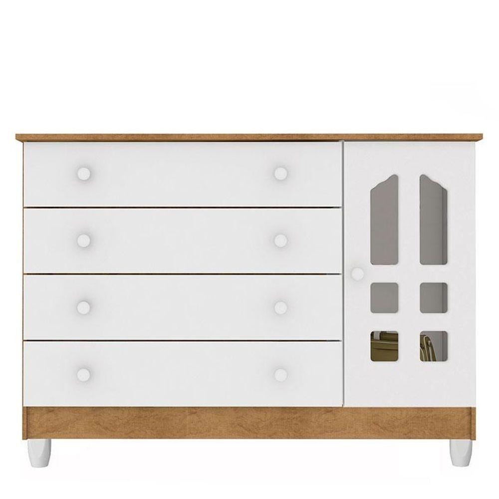 Berço Americano Lara E Cômoda Gran Selena Branco Acetinado Amadeirado Com Colchão - Carolina