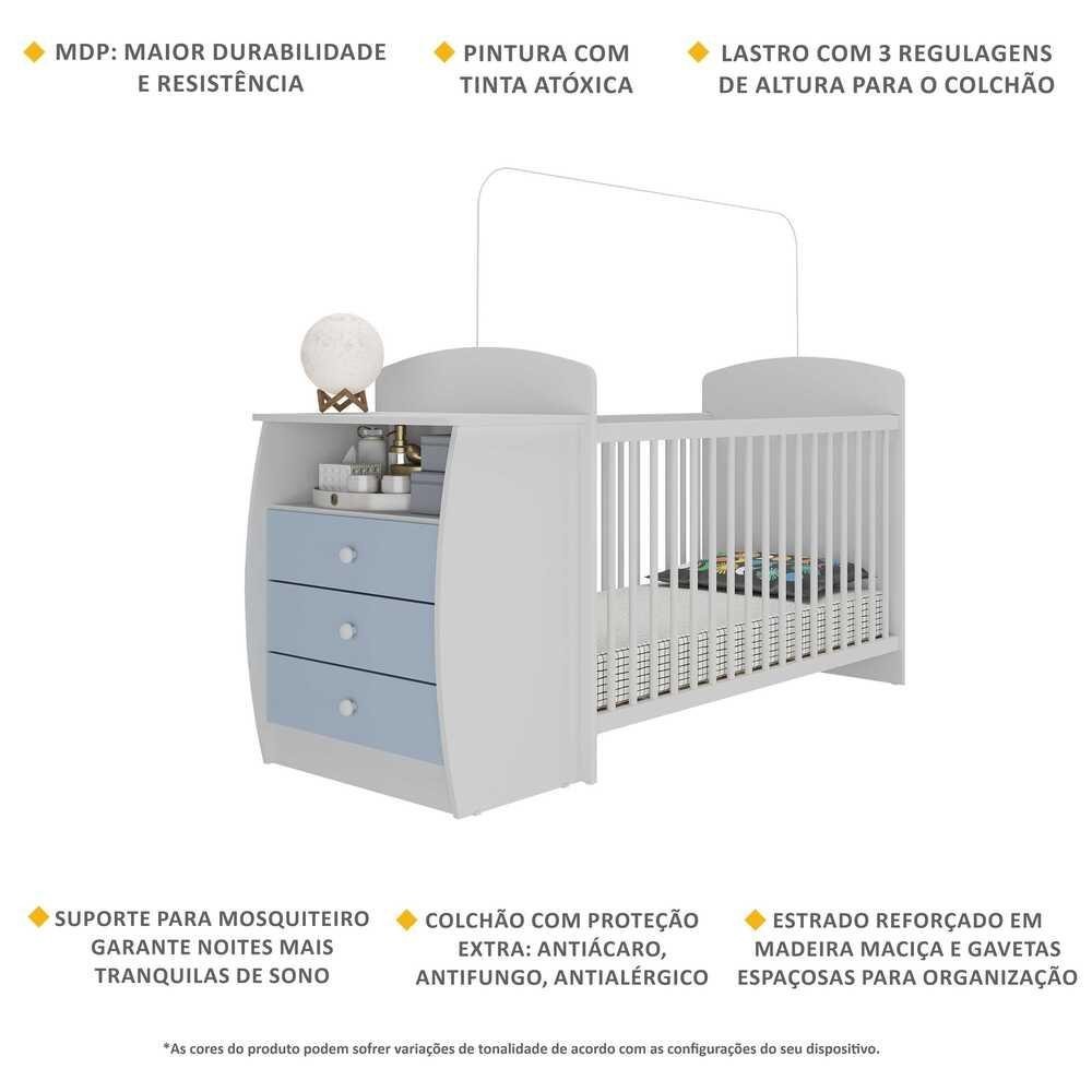 Berço Cômoda com Colchão Incluso Colinho de Mãe Multimóveis Branco/Azul