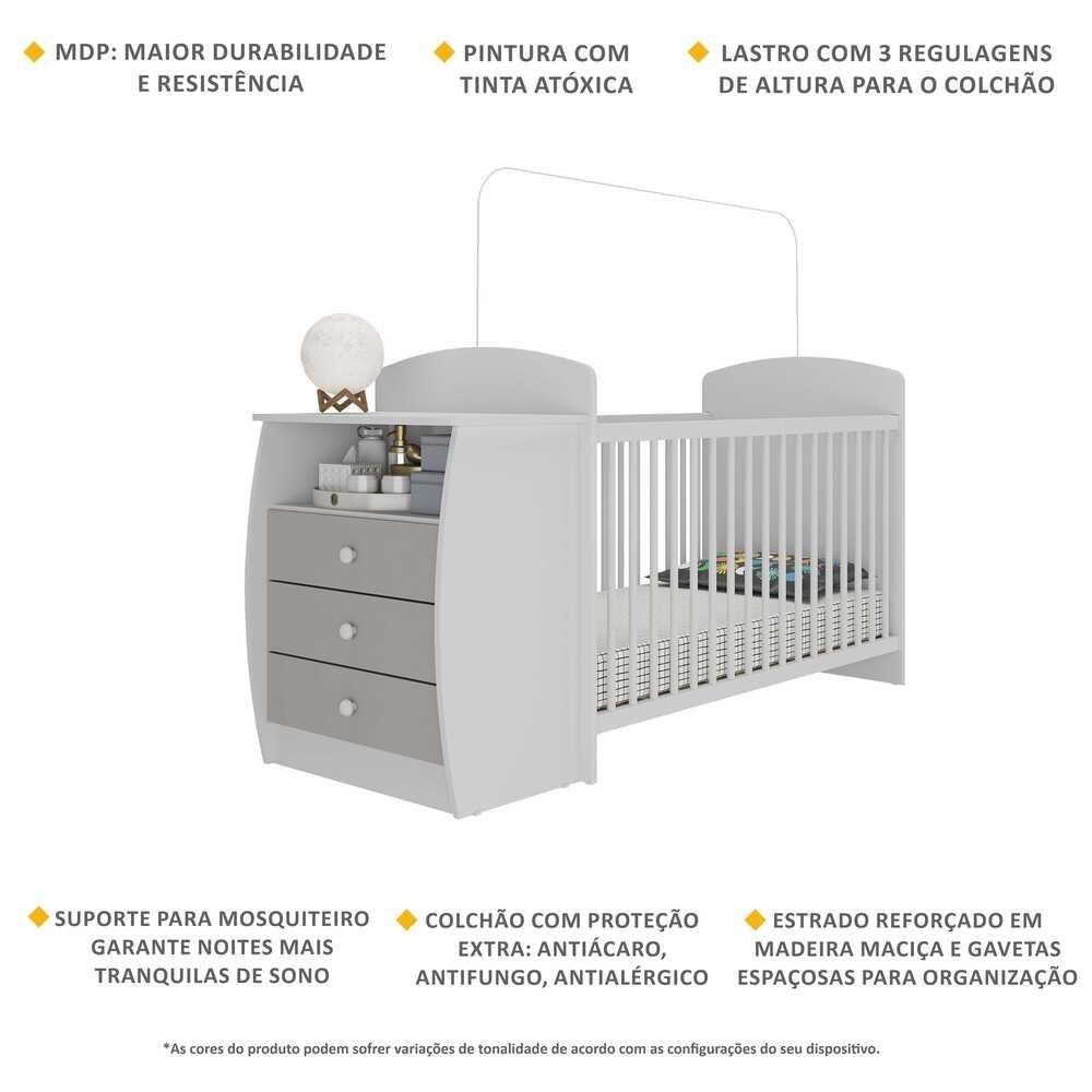 Berço Cômoda com Colchão Incluso Colinho de Mãe Multimóveis Branco/Cinza