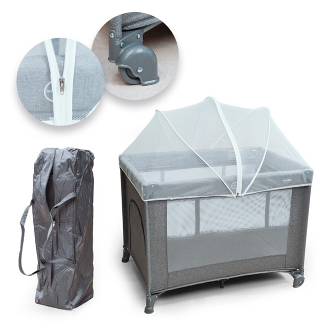 Berço e Cercadinho Portátil Com Bolsa para Transporte Grafite Yuupi