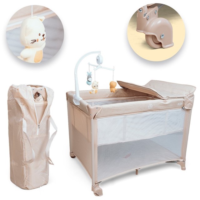 Berço e Cercadinho Portátil com Trocador e Bolsa para Transporte Bege Yuupi