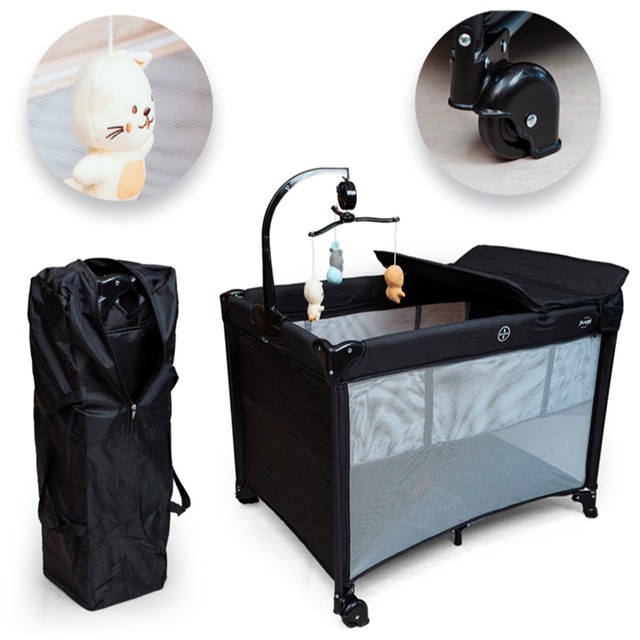 Berço e Cercadinho Portátil com Trocador e Bolsa para Transporte Preto Yuupi