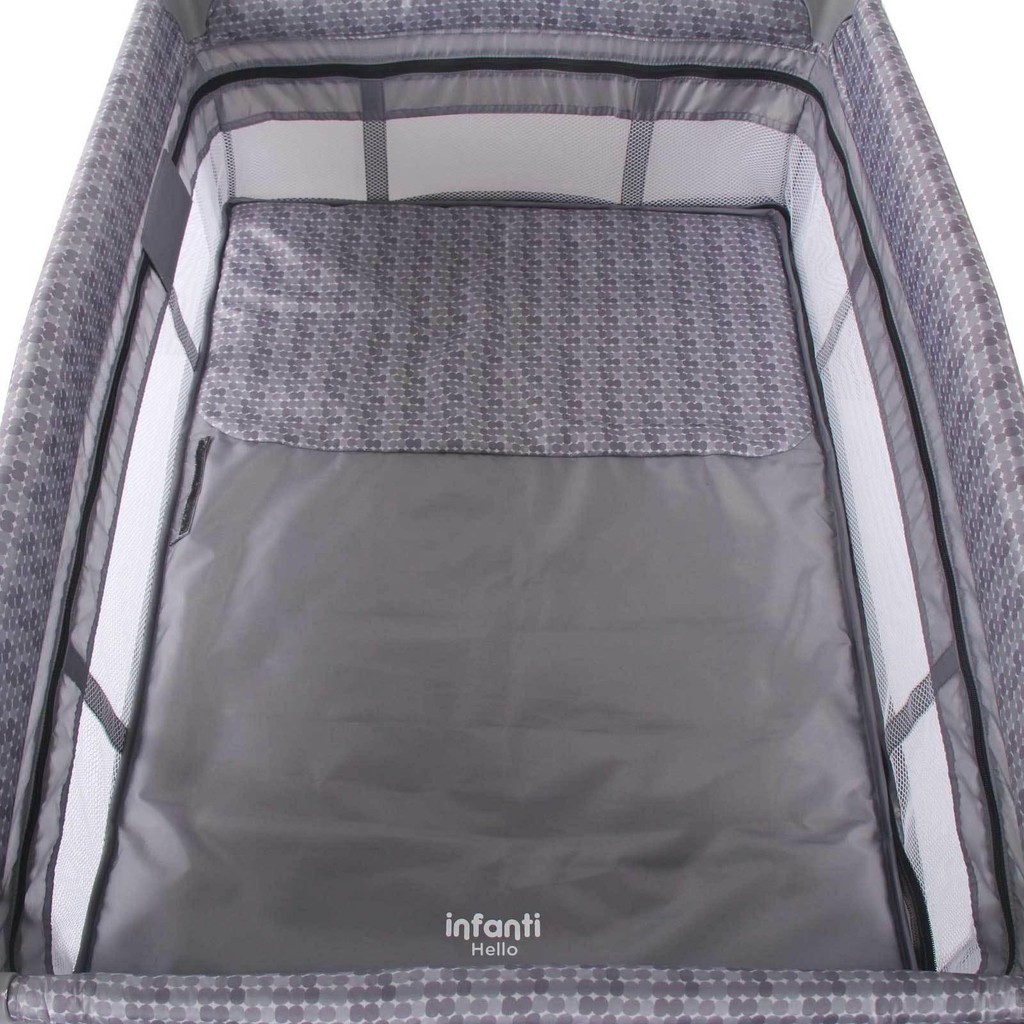 Tenha sempre o local seguro e confortável para o seu filho ter um soninho tranquilo em todos os lugares com o berço Hello da Infanti. Portátil e desmontável, para uso em casa ou em viagens vem com bolsa de transporte que auxilia também no armazenamento quando não estiver em uso. As 2 opções de altura acompanham a fase do bebê: na mais alta, que já vem pré-montada para facilitar o uso, é indicado para o recém-nascido, até aproximadamente 6 meses ou o bebê começar a aprender a sentar sozinho. Depois o uso continua na altura de baixo para os maiorzinhos com um suporte para até 18 kg de peso! O mosquiteiro com arcos, elevado, deixa o berço mais arejado e fica posicionado longe do bebê, muito mais seguro, é fácil de instalar e sua abertura com zíper permite o acesso à criança, sempre que necessário, sem precisar remover, com muito mais praticidade. O colchonete possui zíper e trava, impedindo que ele se movimente, sendo super seguro, dando tranquilidade aos pais. Garantia de 2 anos mediante registro gratuito no site infanti.com.br em até 1 ano após a compra. Características: 2 opções de altura Colchonete com zíper e trava de segurança Laterais em tela mais arejado e com melhor visibilidade Porta-objetos: bolso lateral para até 2kg Mosquiteiro elevado com arcos e zíper para abertura Rodas que facilitam mover o berço Portátil e desmontável com bolsa de transporte