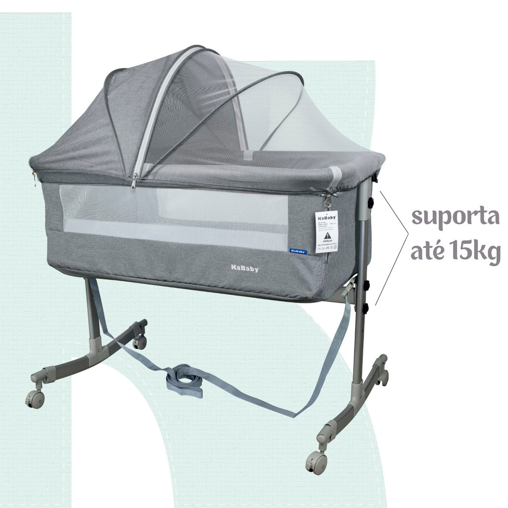 O Berço Moisés Co-Bed com Mosquiteiro da Kababy é a solução perfeita para proporcionar o melhor sono para o seu bebê, além do conforto para o seu pequeno, ele acompanha um designe único e moderno trazendo versatilidade e praticidade para o seu bebê nas fases de crescimento. Ele possui abertura lateral e 9 incríveis posições de regulagem de altura que permitem que seu bebê fique na posição perfeita, os ajustes de altura também permitem que seu pequeno fique na posição anti refluxo, possui 4 rodinhas multidirecionais, todas com freios evitando possíveis deslizamentos, além de ser super resistente suportando até 15 kg, acompanha um colchão e um mosquiteiro, possui rede na parte da frente e na parte de trás, deixando o ar circular em volta do seu pequeno, é super compacto, fácil de montar e desmontar facilitando no transporte em viagem ou até mesmo na hora de guardar, feito em tecido de linho e algodão para evitar irritação na pele do bebê, possui abertura lateral dando a opção de acoplar o berço na cama, possui pés retráteis para fazer uma mudança rápida para o modo balanço. O Berço Co-bed da KaBaby é equipado com diversas funcionalidades, tornando o berço ideal para te auxiliar no dia a dia. Mosquiteiro Mosquiteiro totalmente removível, metade com tecido que proporciona sombra ao seu bebê e metade com tela para ventilação e visualização. Proteção total contra insetos. Perfeito para proporcionar sono tranquilo e conforto ao bebê. Abertura Lateral com Tiras de Acoplamento: Possui uma lateral que pode ser aberta e fixada à cama dos pais por meio de tiras de segurança, permitindo que o bebê durma próximo, facilitando a amamentação e o cuidado noturno. 9 Posições de Regulagem de Altura: Ajusta-se a diferentes alturas de camas, garantindo alinhamento perfeito e segurança. Essa flexibilidade também permite posicionar o berço em inclinação suave, auxiliando em casos de refluxo. Modo Balanço com Pés Retráteis: Os pés retráteis permitem transformar o berço em um modo de balanço, ajudando a acalmar o bebê. Colchão Incluso: Acompanha um colchão, proporcionando conforto adequado para o sono do bebê. Tecido de Linho e Algodão: Fabricado com materiais suaves como linho e algodão, minimizando o risco de irritações na pele sensível do bebê. Laterais com Tela Respirável: As laterais em tela permitem melhor circulação de ar, mantendo o ambiente arejado e reduzindo o risco de sufocamento. 4 Rodinhas com Freio: Equipado com quatro rodas multidirecionais, todas com sistema de freio, facilitando o deslocamento seguro do berço pela casa. Fácil Montagem e Desmontagem: Projetado para ser montado e desmontado com facilidade, ideal para viagens ou para economizar espaço quando não estiver em uso. Sobre a KaBaby Fundada em 2011, a KaBaby desenvolve produtos e acessórios inovadores para acompanhar todas as fases do crescimento dos bebês. Com uma grande variedade de artigos para crianças de 0 a 5 anos, nossos produtos são pensados com foco na qualidade e conforto, sempre seguindo à risca todas as normas técnicas e de segurança com certificações nacionais e internacionais. Desenvolvido com muito cuidado e carinho para os consumidores, nossos produtos proporcionam experiências marcantes no estímulo aos sentidos e transitam nas categorias de alimentação, segurança, higiene, saúde, passeio e atividades. Ter um produto KaBaby em casa é viver uma experiência única e especial com quem mais amamos.