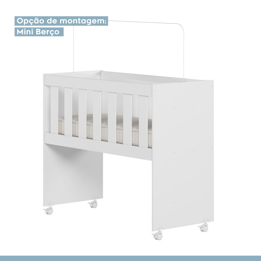 Transforme o quarto do seu bebê com praticidade e elegância! O Mini Berço Ruby Multifuncional 5 em 1 é ideal para acompanhar o crescimento do seu pequeno, oferecendo conforto, segurança e um design moderno que combina com qualquer ambiente. 🌟 Funcionalidades 5 em 1: ✔️ Mini Berço: perfeito para recém-nascidos que ainda não sentam ou se levantam sozinhos. ✔️ Mesa Recreativa: estimula o aprendizado e a brincadeira. ✔️ Mesa de Estudos: acompanha a fase escolar da criança. ✔️ Aparador / Escrivaninha: aproveitamento total do móvel ao longo dos anos. 🧸 Características: Estrutura resistente em MDF de alta qualidade Design elegante e moderno Rodízios que facilitam o transporte e movimentação Acompanha colchão para maior conforto do bebê Suporte para mosquiteiro incluso (mosquiteiro não acompanha) 📏 Dimensões: Altura: 80 cm Largura: 94 cm Profundidade: 43 cm Colchão: 91 x 39 x 7 cm 📦 Itens Inclusos: 1 Mini Berço Ruby 1 Colchão 1 Manual de montagem ⚙️ Montagem e Cuidados: Recomendado que a montagem seja feita por um profissional. Limpeza: utilizar pano macio levemente umedecido com água. ⚠️ Observações Importantes: Imagens meramente ilustrativas, objetos de decoração não inclusos. As tonalidades podem variar conforme a calibração do monitor. Verifique as dimensões antes da compra para garantir a passagem em portas, elevadores ou corredores. Confira a embalagem no momento da entrega.
