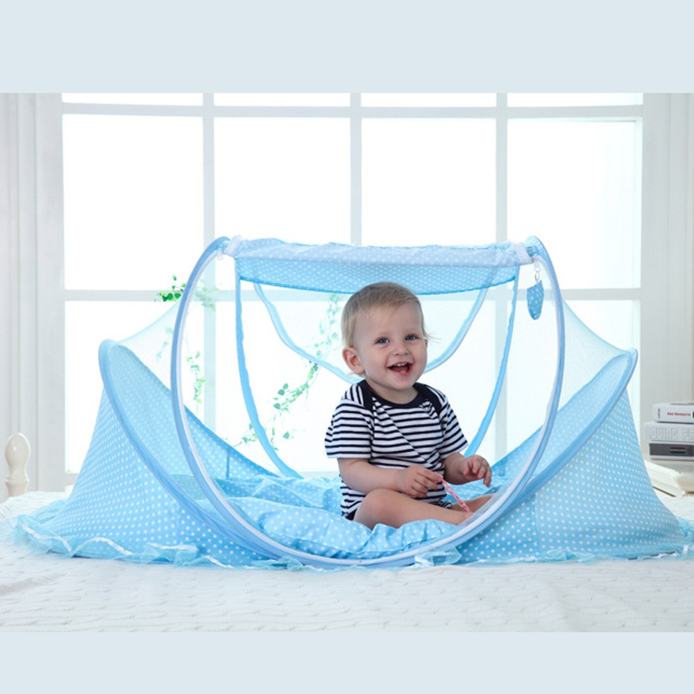 Berço Mosquiteiro Portátil para Bebê - Azul/Rosa