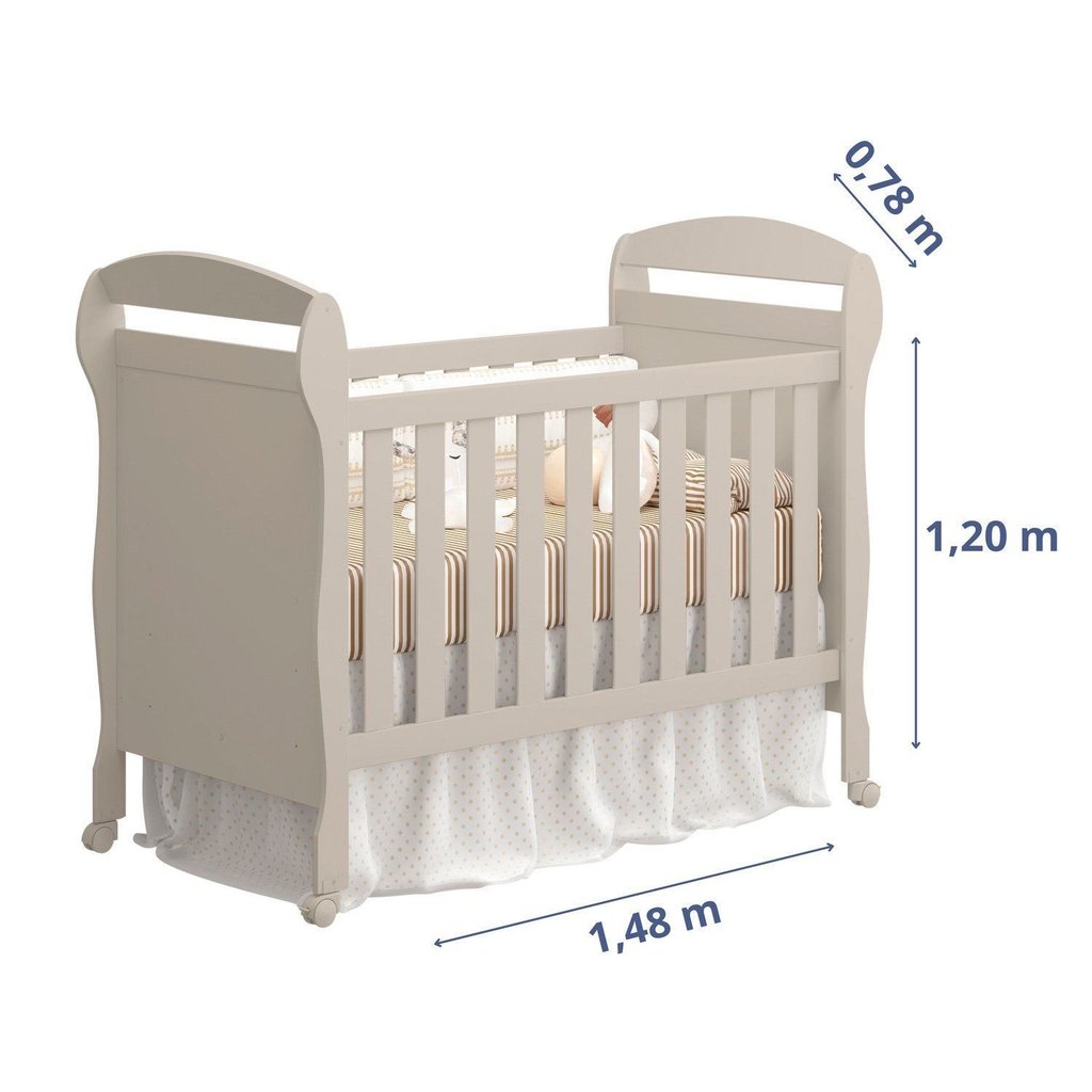 Para um cantinho cheio de amor, segurança e conforto do seu bebê, o Berço Danny 2 em 1 é perfeito para acompanhar cada fase, transformando-se em um lindo sofazinho quando o pequeno crescer. Um móvel funcional, elegante e pensado com todo carinho para o seu momento mais especial. ESPECIFICAÇÕES: -Certificado pelo INMETRO -Produzido em MDF -Transforma-se em sofazinho -Padrão Americano -Cantos arredondados para mais segurança -3 regulagens de altura do estrado -Estrado em madeira reflorestada -Grade fixa -4 rodízios (2 com trava) -Suporte para mosquiteiro incluso -Acabamento pintura UV (atóxico) MEDIDAS: 148 x 120 x 78 cm (L x A x P) Colchão recomendado: 130 x 70 x 12 cm (D18) OBSERVAÇÕES: Produto enviado desmontado, com manual e acessórios. Recomenda-se montagem profissional Estilo: Clássico Peso (kg): 33.2 Capitonê: Não Garantia: 03 Meses Portátil: Não Altura (cm): 120 Acabamento: Pintura UV Largura (cm): 148 Possui Pés: Não Berço 3 em 1: Não Possui Portas: Não Tipo de Berço: Berço Americano Possui Gavetas: Não Possui Rodízio: Sim Suporta Até (kg): 30 Pintura Atóxica: Sim Profundidade (cm): 78 Tipo de Estrado: Fixo Acompanha Dossel: Não Acompanha Móbile: Não Escala de Brilho: Fosco Acompanha Colchão: Não Material da Grade: MDF Origem do Produto: Nacional Rodízio com Trava: Sim Ambiente Principal: Quarto de Bebê Material Principal: MDF Possui Prateleiras: Não Sistema Anti-Refluxo: Não Material da Cabeceira: MDF Tipo de Grade do Berço: Fixa Acompanha Cama Auxiliar: Não Altura do Estrado até o Chão: 62.3 Estrado com Regulagem de Altura: Sim Quantidade de Rodízios com Trava: 2 Acompanha Suporte para Mosquiteiro: Sim Sem Véu Estrado Regulável em Quantas Posições: 3 Permite a Utilização de Cama Auxiliar: Não Marca: Móveis Reller Cor Flex: não Cor do Produto: Areia Fosco Itens Inclusos: 1 Berço, Kit Ferragens e Manual de Instruções Cor Predominante: Bege Linha ou Coleção: Danny Multifunção Flex: não Tipo de Certificado: INMETRO - 006366/2018 Opções de Altura do Estrado: 1ª 33,5 cm - 2ª 46,3 cm - 3ª 62,3cm Tamanho do Colchão Indicado (L x C): 130x70